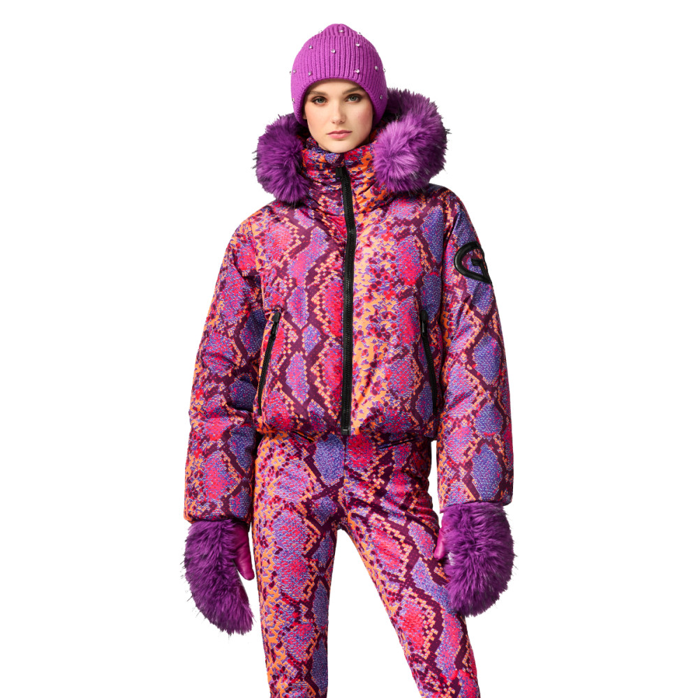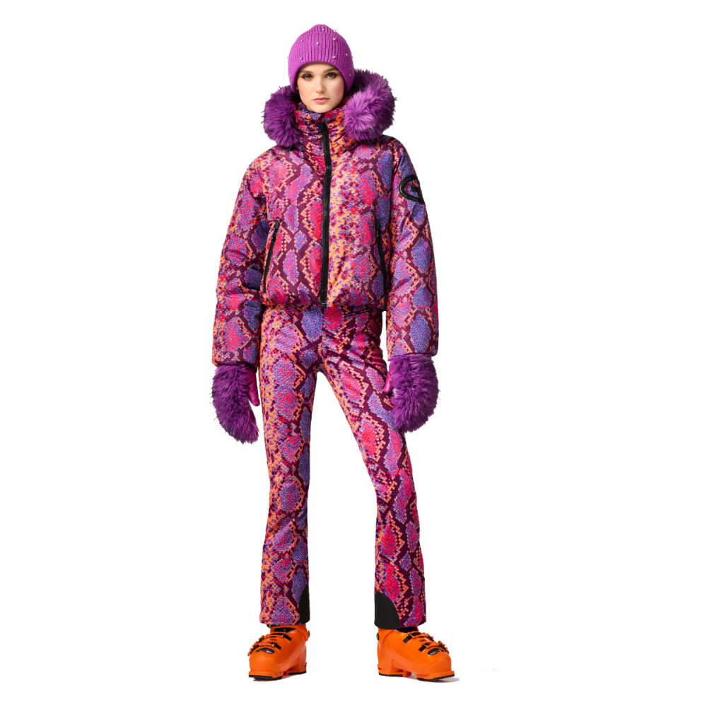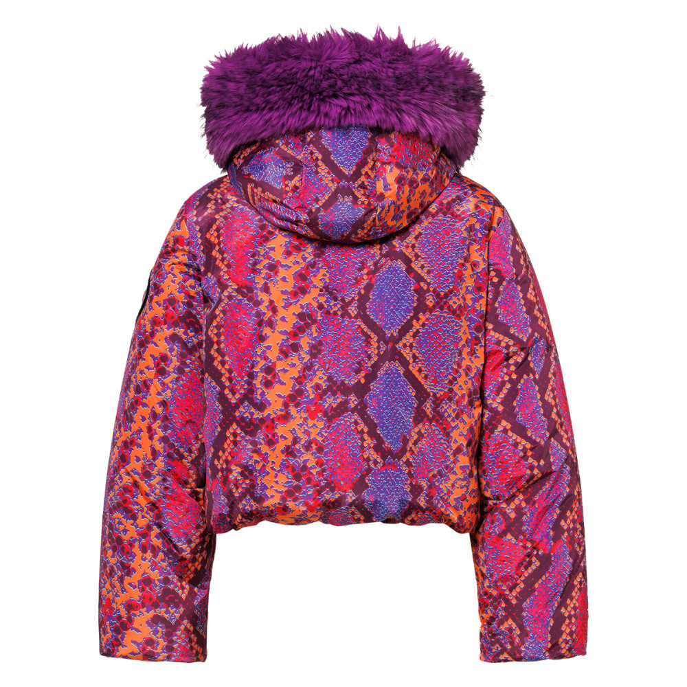 Dámska lyžiarska bunda Goldbergh LUCINDA FAUX BORDER vás upúta odvážnym hadím vzorom, ktorému dominuje výrazná kapucňa lemovaná umelou kožušinou. Skrátený strih dodáva bunde moderný vzhľad, zatiaľ čo technické vlastnosti zaisťujú spoľahlivú ochranu na zjazdovke. Materiál z recyklovaného polyesteru ponúka vodný stĺpec 10 000 mm a zároveň vysokú priedušnosť. Výplň z husacieho peria s certifikáciou RDS vás zahreje a podšívka s technológiou proti zápachu neutralizuje baktérie a predlžuje sviežosť.