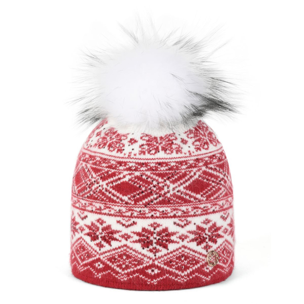 Originálna čiapka v nórskom vzore, ktorú si jednoducho zamilujete! Čiapka je na prednej strane doplnená striebornými kamienkami Swarovski a na boku je zlaté logo značky. Hlavným prvkom je odnímateľná brmbolca na cvok. Vnútorná strana je zateplená fleecom, ktorý vám zaistí teplo aj komfort pri nosení.