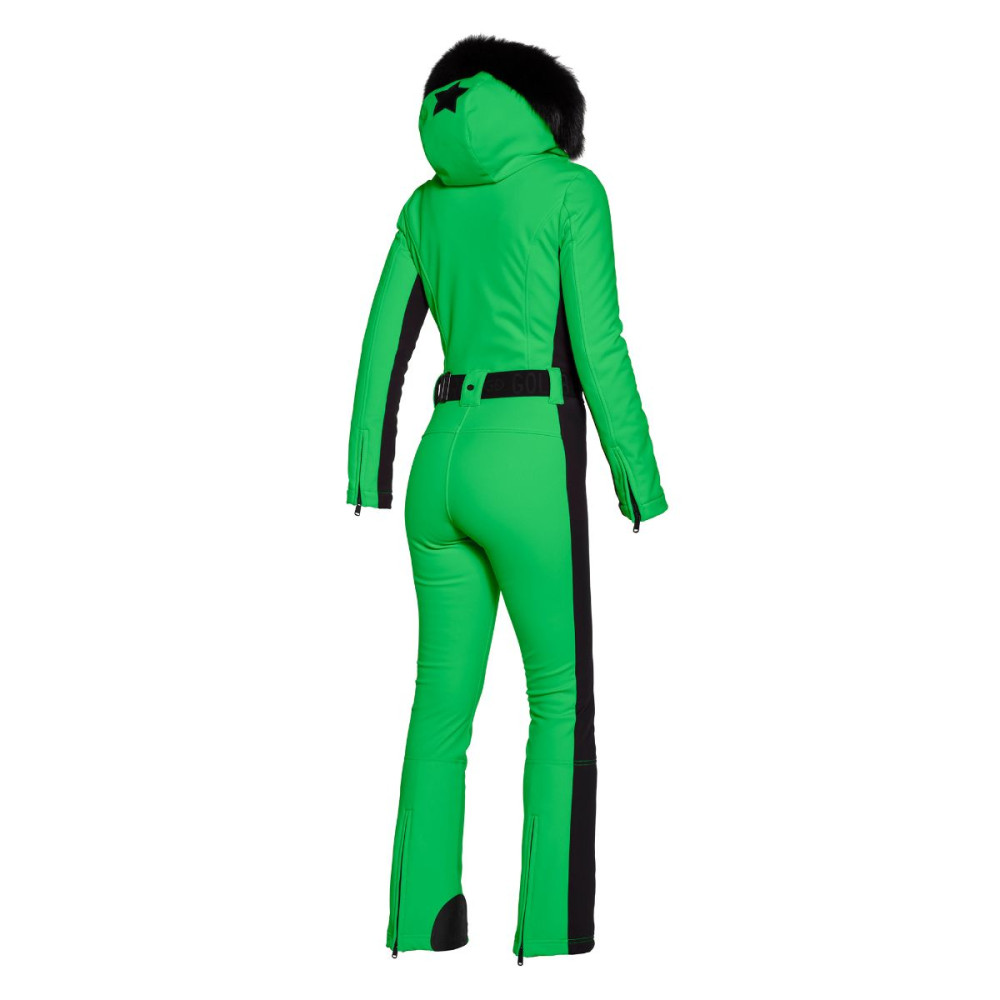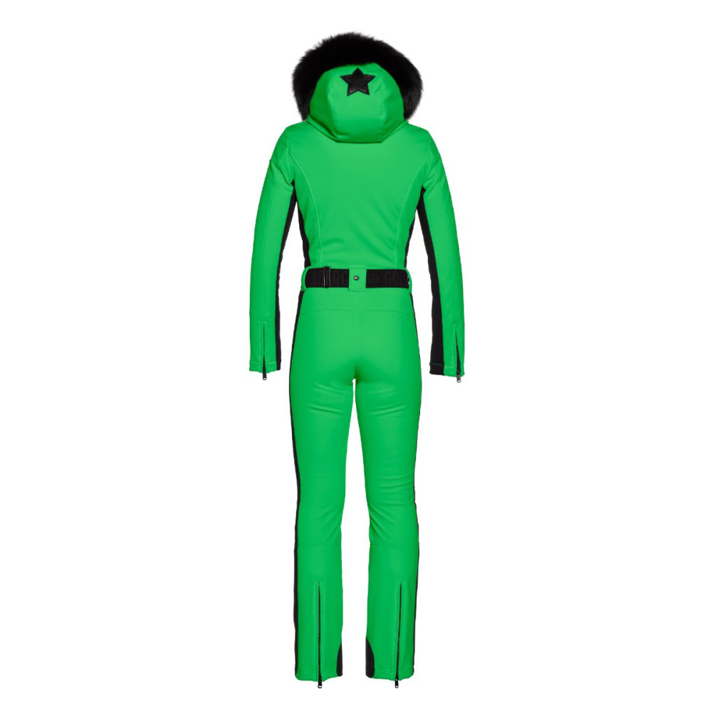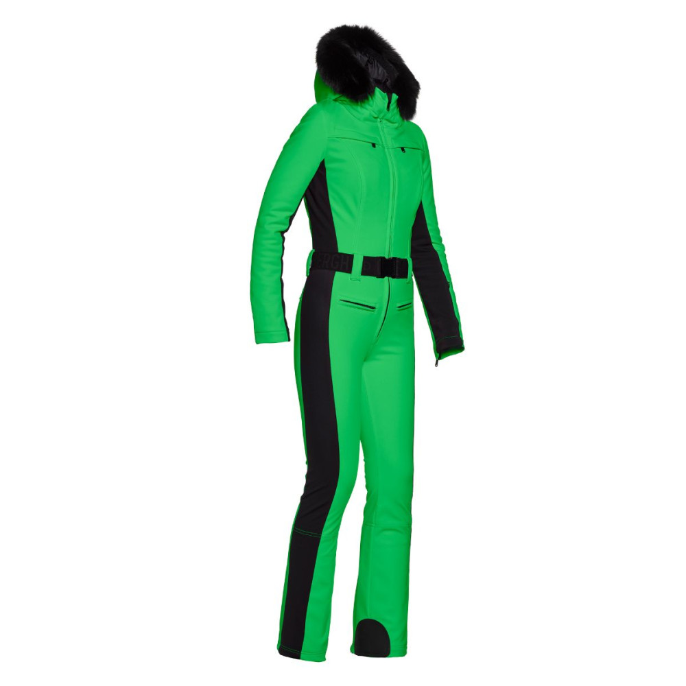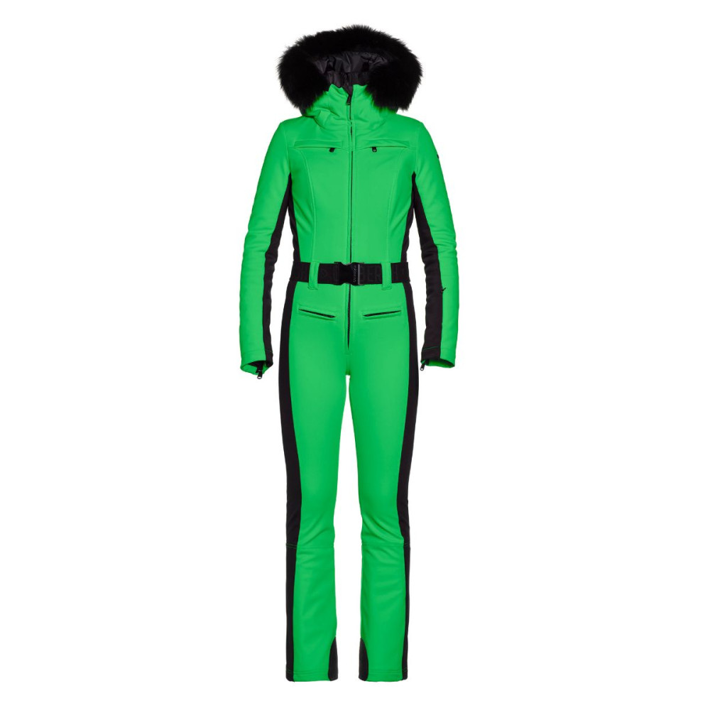 Staňte sa hviezdou svahu s lyžiarskou kombinézou Goldbergh PARRY. Kombinéza je zateplená pomocou izolácie Primaloft av kombinácii s páperím vytvára vysoký tepelný komfort. Kombinéza je z elastického materiálu, ktorý sa krásne prispôsobí postave. Pozdĺž rukávov a vonkajšej strany sú čierne pruhy, ktoré opticky zužujú. Celkový vzhľad dopĺňa bohatá kožušina zo syntetiky okolo kapucne, veľkostne nastaviteľný opasok s ozdobnou sponou a detail vyšitej čiernej hviezdy. Súčasťou je opasok na výmenu.