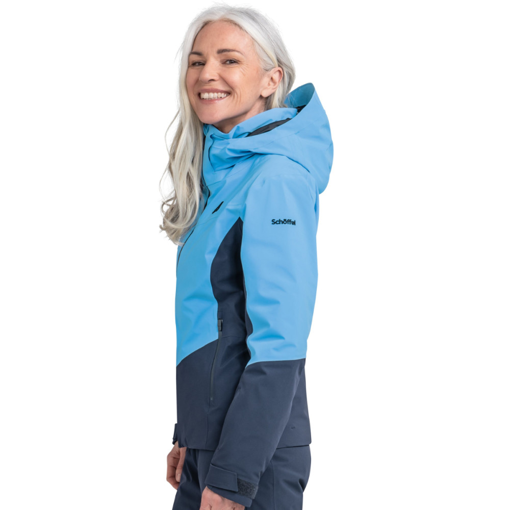 Na lyže potrebujete oblečenie, ktoré vás nesklame. Napríklad ako dámska lyžiarska bunda Schöffel Style Safuna. Vodný stĺpec 20 000 mm a priedušnosť 20 000 MVTR zaručujú, že bunda udrží vaše telo v suchu, nech už sa na horách stretnete s akýmkoľvek počasím. Vďaka 4-smerne strečovému materiálu vám poskytne voľnosť pohybu, zatiaľ čo odvetrávacie zipsy s meshovými vložkami umožnia rýchle ochladenie pri intenzívnej aktivite.