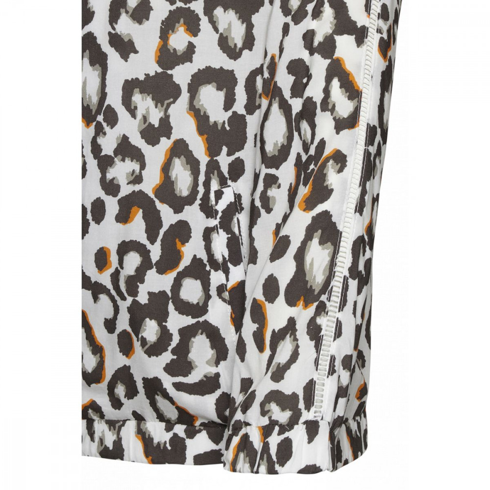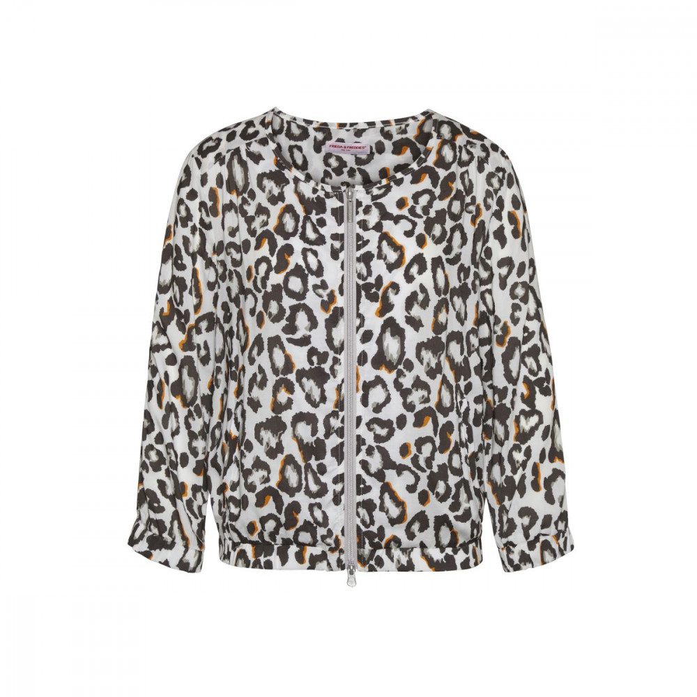 Zvieracie vzory sú hitom a nechýbajú ani u značky Frieda & Freddies. Dámska letná mikina je v hnedo-oranžovej farebnej kombinácii. Mikina má kratší strih av páse je guma. Rukávy sú ozdobené bielym pruhom po celej dĺžke. Na boku sú dve vrecká.