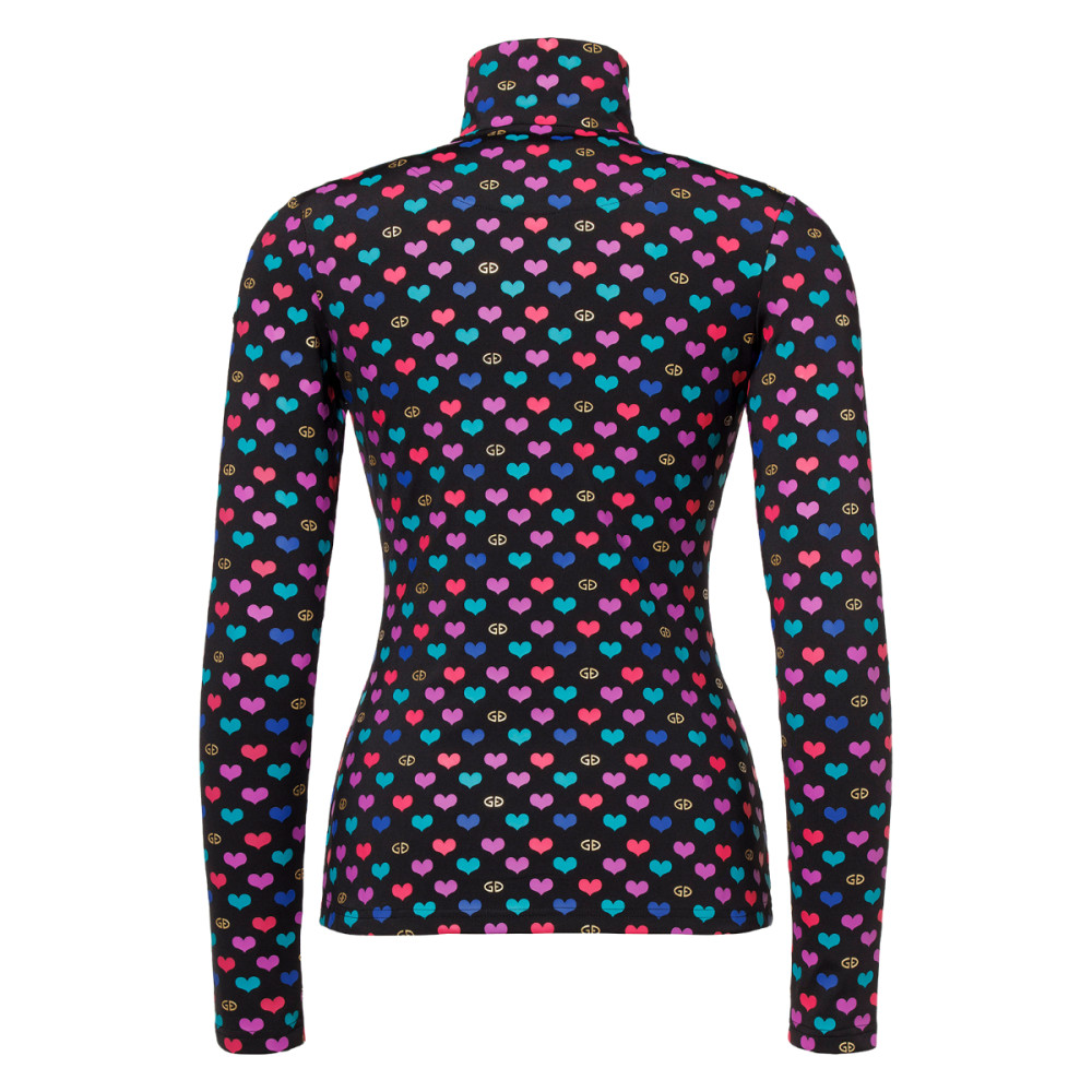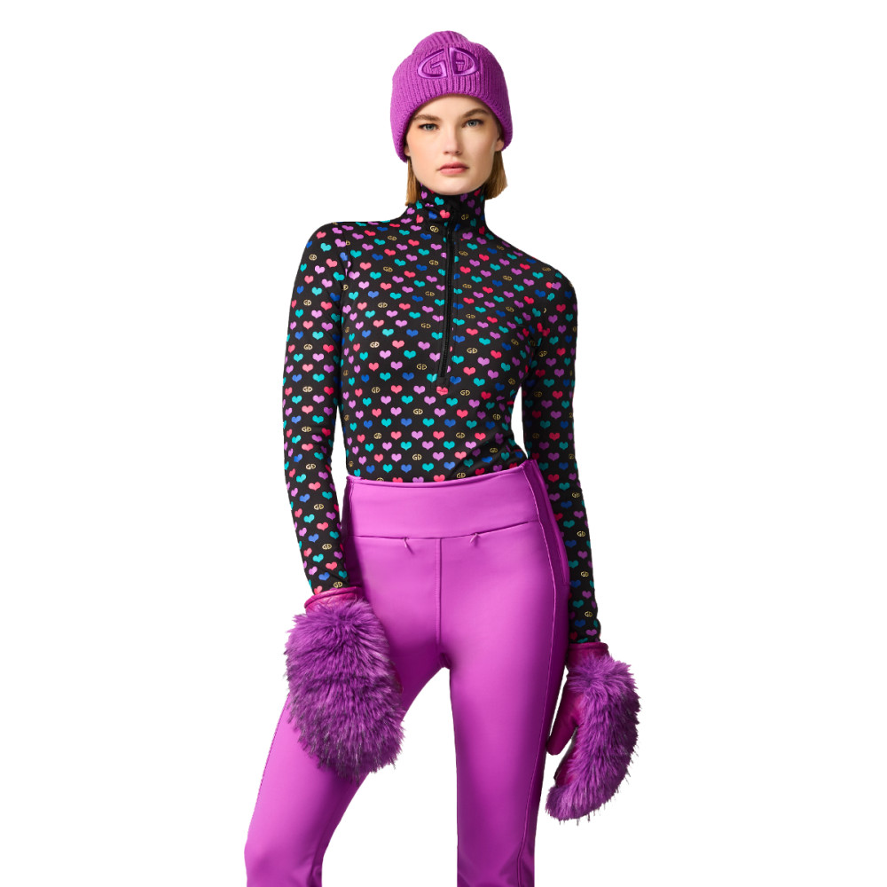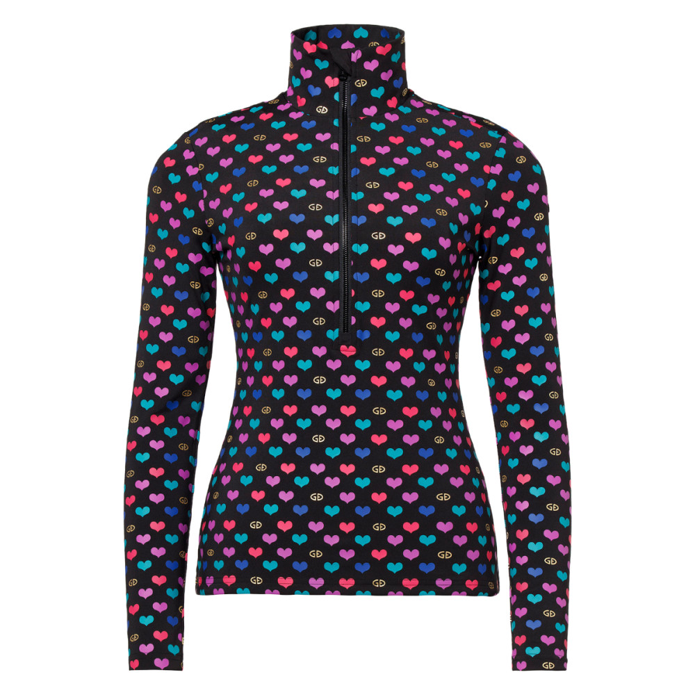 Dámska mikina Goldbergh CUORI vás zaujme hravou potlačou sŕdc a technickým spracovaním, ktoré oceníte pri pohybe. Pružný powerstretch materiál sa prispôsobí telu, odvádza vlhkosť a rýchlo schne. Technológia proti zápachu zabraňuje vzniku zápachu, takže zostanete svieži aj pri celodennom lyžovaní. Mikina má priliehavý golier a poloprepínací zips pre ľahké vetranie. Kovové logo na rukáve dodáva elegantný detail.