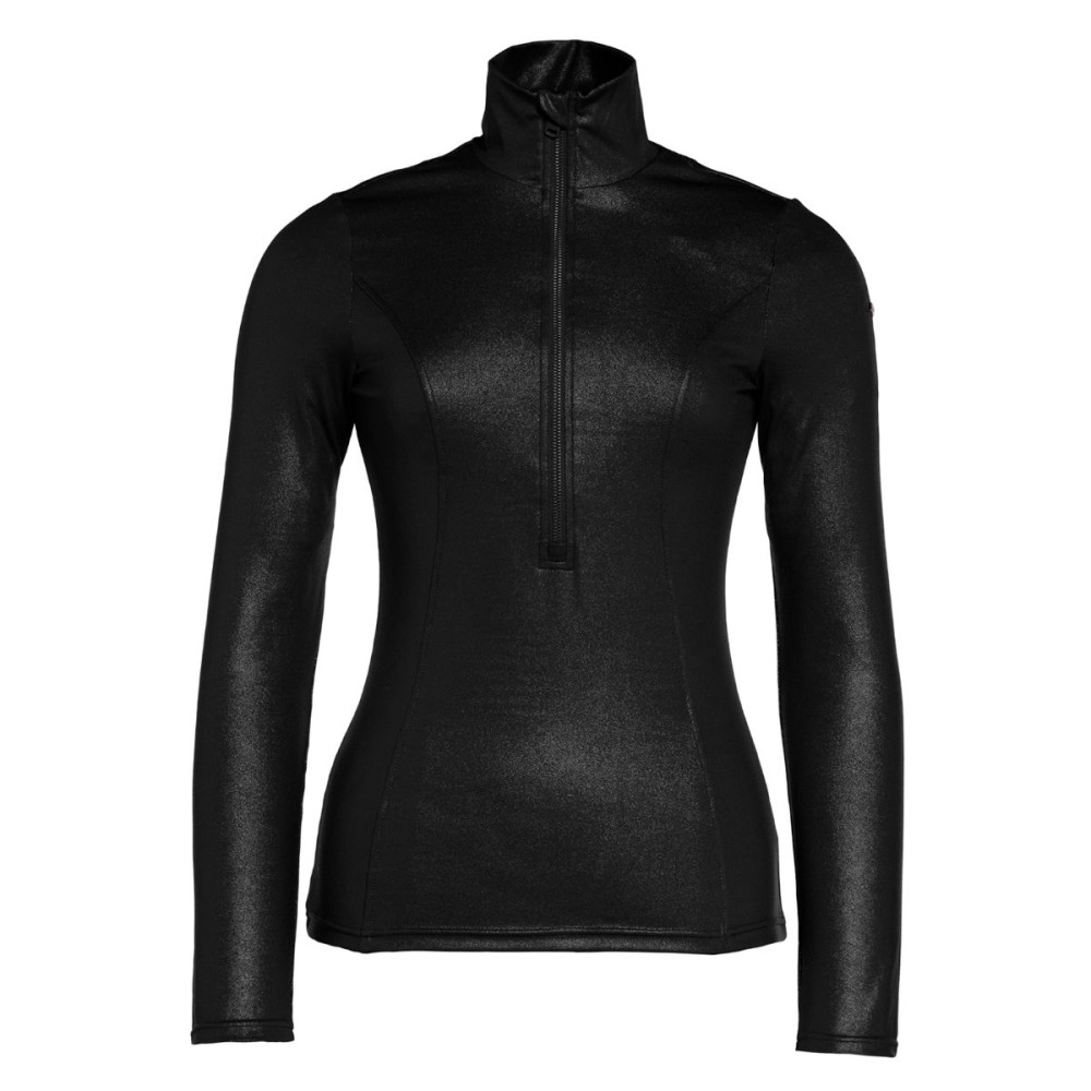 Dámska mikina, ktoré dokonale doplnia každý lyžiarsky komplet. Mikina je v lesklom čiernom prevedení, ktoré ozvláštňuje jemné prešitie. Mikina je z veľmi príjemného a ľahkého materiálu, ktorý je priedušný. Mikina má zapínanie na dlhý polozapínací zips a vyvýšený stojačik. Na ramene je kovové logo značky.