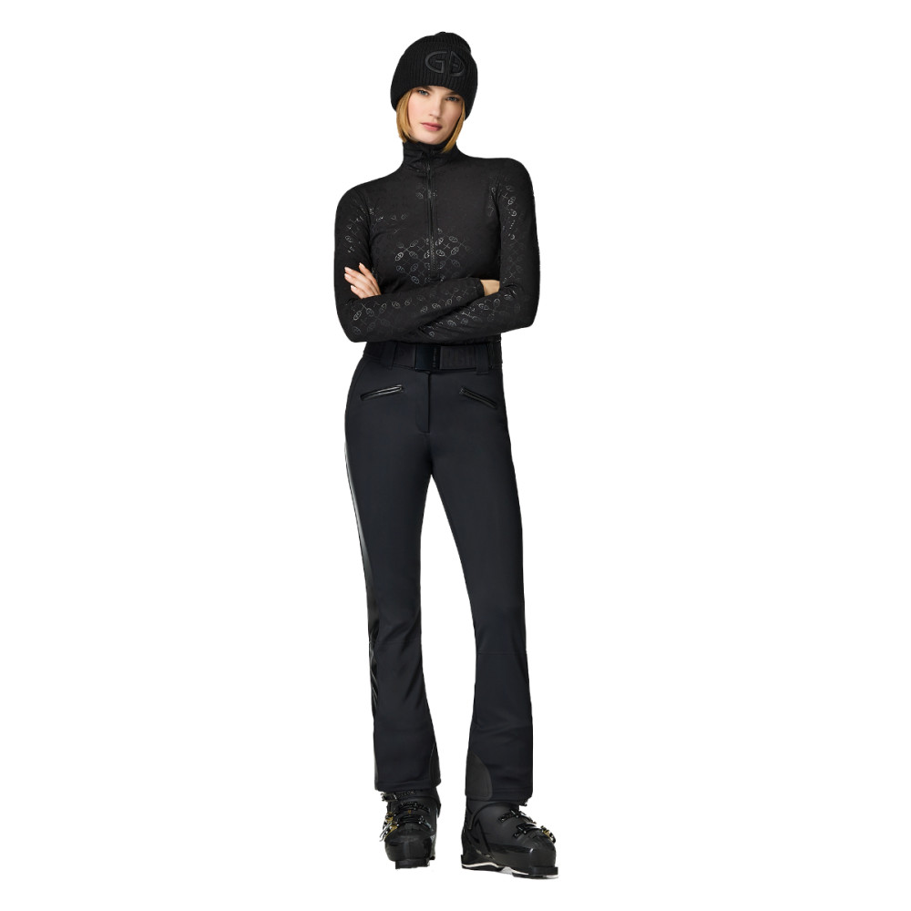 Dámska mikina Goldbergh Icon je stelesnením elegancie na svahu aj mimo neho. Priliehavý strih, lesklá celoplošná potlač loga a vyšší golier dodávajú mikine sofistikovaný vzhľad, zatiaľ čo funkčný materiál s vysokou elasticitou zaistí maximálne pohodlie pri pohybe. Vďaka poloprepínaciemu zipsu ľahko upravíte ventiláciu podľa potreby a materiál efektívne odvádza vlhkosť, rýchlo schne a zabraňuje vzniku nepríjemných pachov.