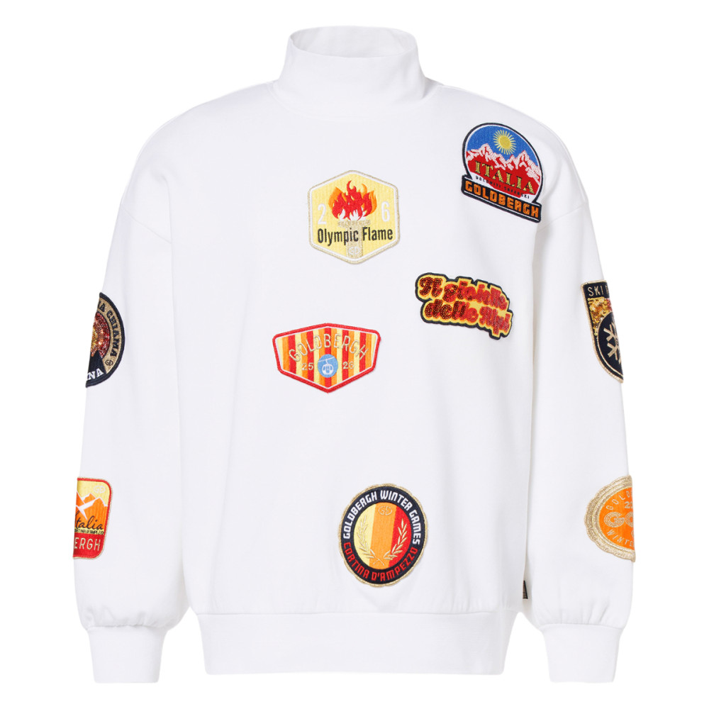 Doplňte svoj après-ski outfit dámskou mikinou Goldbergh ROMA. Mäkký fleece s česanou vnútornou stranou príjemne hreje a zaručuje komfort po celý deň. Vyšší rolákový golier, rebrované manžety a spodný lem držia tvar a chránia pred chladom. Originálne výšivky inšpirované talianskym štýlom dodávajú mikine osobitý charakter.