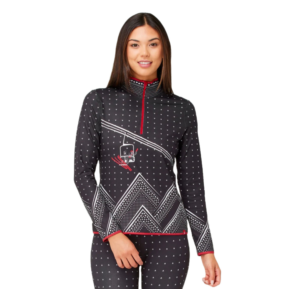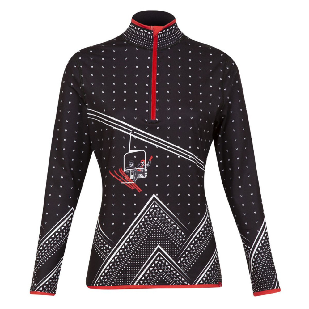 Dámska mikina Krimson Klover oživí váš lyžiarsky šatník. Originálnu potlač s lyžiarmi na lanovke ocenia všetci, s ktorými pôjdete na après-ski. Štýl ale nie je jedinou prednosťou, mikina je teplá, priedušná a materiál vás ochráni pred škodlivými ultrafialovými lúčmi.