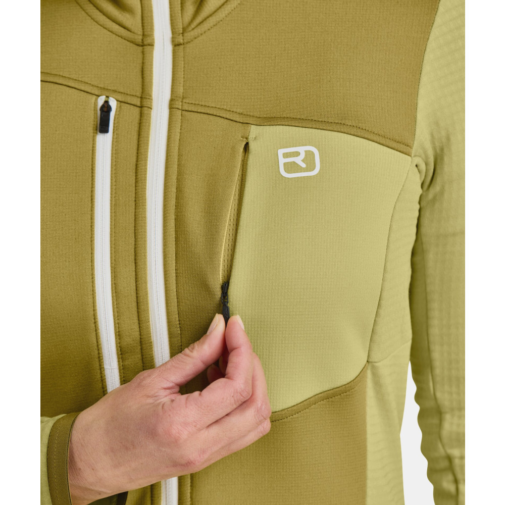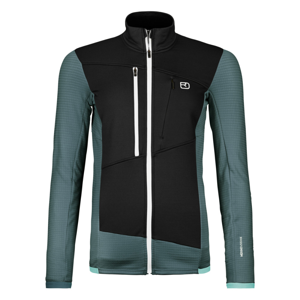 Vďaka inovatívnej kombinácii materiálov MERINO FLEECE GRID, ktorý v sebe kombinuje jemnú vaflovú štruktúru pre zachytenie teplého vzduchu na vnútornej strane a odvádzanie vlhkosti na vonkajšie, ponúka nielen výnimočné teplo, ale zároveň aj rýchle schnutie a extrémnu priedušnosť. Príjemne mäkká merino vlna priamo na pokožke bráni vzniku nepríjemného zápachu. Pre zvýšenú ochranu v exponovaných oblastiach, ako sú hrudník a ramená, je vybavená pružnou, priedušnou tkaninou MERINO FLEECE LIGHT, ktorá odoláva vetru a chladu. Integrované náprsné vrecká kompatibilné s batohom poskytujú praktický priestor na uloženie predmetov, ako sú mapy či mobilný telefón.