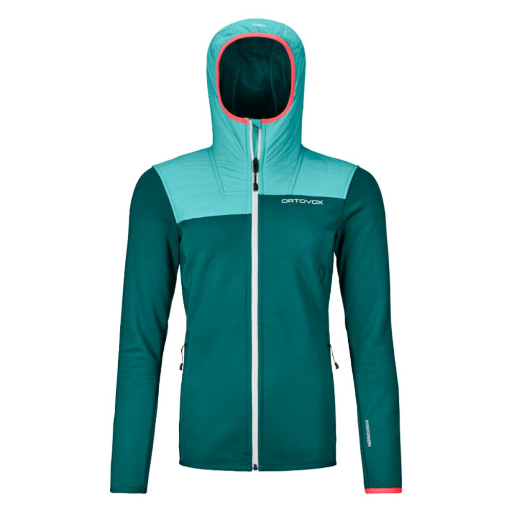 Kombinácia hrejivého materiálu MERINO FLEECE PLUS s merino vlnou, recyklovaným polyesterom a elastickým materiálom TEC STRETCH poskytuje maximálnu voľnosť pohybu a vysokú úroveň pohodlia. Vďaka šikovnému umiestneniu prešívaného, elastického a vetru odolného materiálu TEC STRETCH v oblasti ramien a kapucne, je mikina tiež robustná a odolná. Mäkký merino fleece na vnútornej strane prirodzene reguluje telesnú klímu a je príjemný na koži.