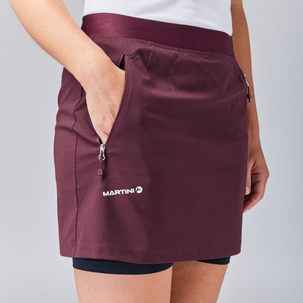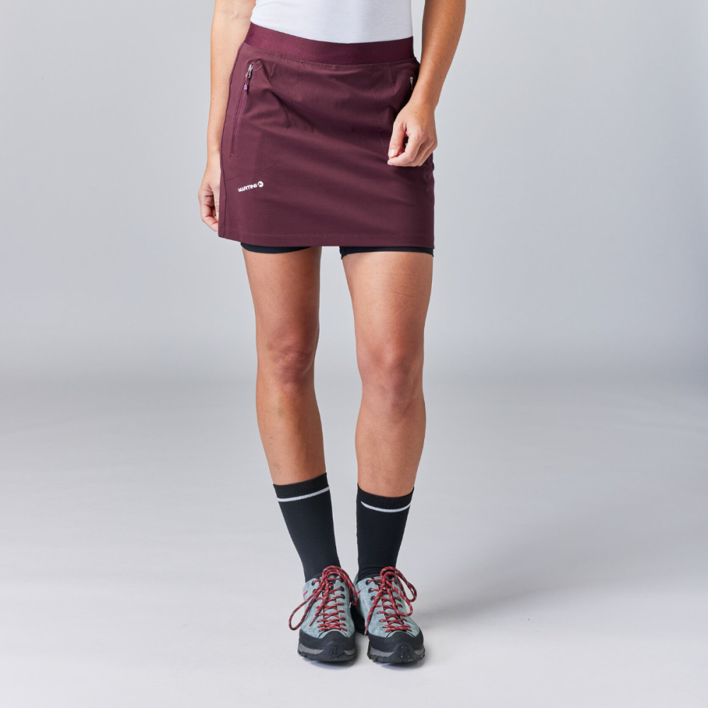 Navonok vyzerá ako elegantná dámska sukňa, ale skrýva v sebe tajomstvo - priliehavé vnútorné šortky, ktoré sú ultraľahké a rýchloschnúce. Vďaka tomu sa môžete bez obáv vydať na túru, prechádzku prírodou alebo akúkoľvek inú aktivitu a pritom vyzerať fantasticky. Vonkajší materiál tvorí špeciálna funkčná tkanina, ktorá zaisťuje chladivý efekt aj v horúcich letných dňoch. Elastický pás s protišmykovou silikónovou vrstvou zaisťuje, že perfektne sedí a pri pohybe neskĺzava.