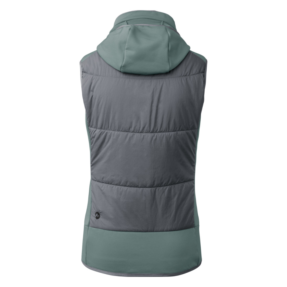 Táto hybridná vesta je vybavená dvojcestným predným zipsom, dvoma vreckami na ruky a náprsným vreckom a priliehavou kapucňou pre dodatočnú ochranu. Elastické lemovanie na kapucni, prieramkoch a leme zaisťuje optimálnu priliehavosť. DWR úprava robí vonkajší materiál vodoodpudivým, čo je ideálne pri premenlivom počasí.