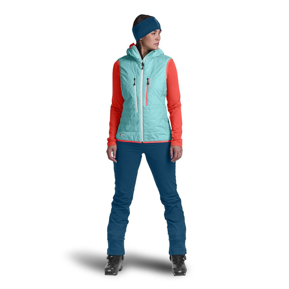 Vonkajšia vrstva z robustného materiálu PERTEX® QUANTUM účinne odoláva vetru a oderu, zatiaľ čo vnútorná izolácia zo švajčiarskej vlny SWISSWOOL s gramážou 60 g/m2 poskytuje vynikajúce teplo a zároveň reguluje vlhkosť. Vďaka prepracovanému športovému strihu a elastickým panelom z materiálu MERINO NATURETEC LIGHT v zadnej časti sa dokonale prispôsobí vášmu telu a poskytne vám maximálnu voľnosť pohybu aj v náročnom teréne. Priliehavá elastická kapucňa a pružný pás spoľahlivo udržia vietor a chlad na uzde.