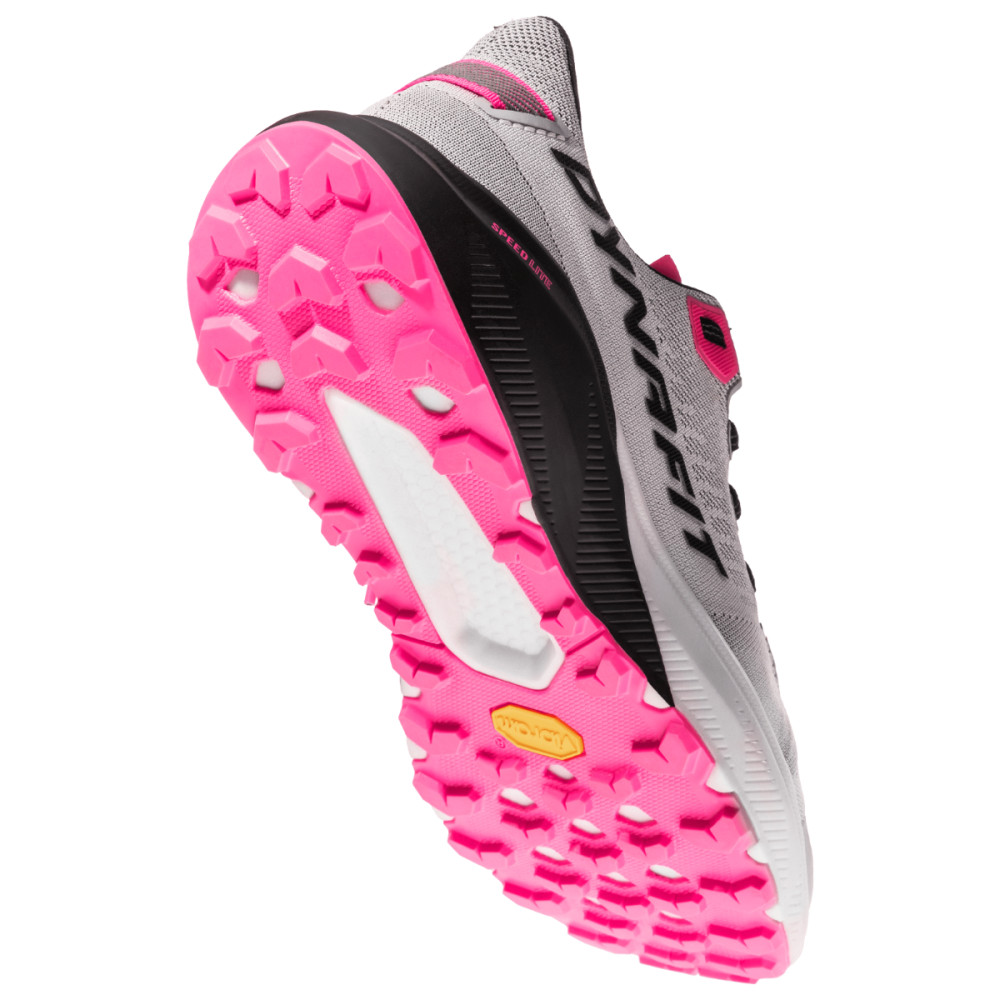 Podrážka Vibram® XS Trek ponúka spoľahlivú priľnavosť a vysokú odolnosť na tvrdom aj premenlivom podklade. Ľahký jacquard zvršok s podielom 32,2% recyklovaných materiálov poskytuje veľmi dobrú priedušnosť a komfort pri dlhších behoch. Ploché šnúrky pomáhajú rovnomerne rozložiť tlak a stabilne fixovať chodidlo.