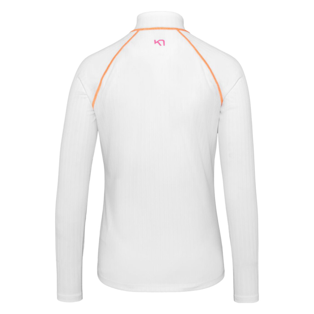 Ploché švy znižujú riziko trenia a zvyšujú komfort pri vrstvení. Stojačik na zips ponúka variabilnú ventiláciu a rýchle prispôsobenie tepelného komfortu. Decentné logo KT dopĺňa čistý športový vzhľad.
