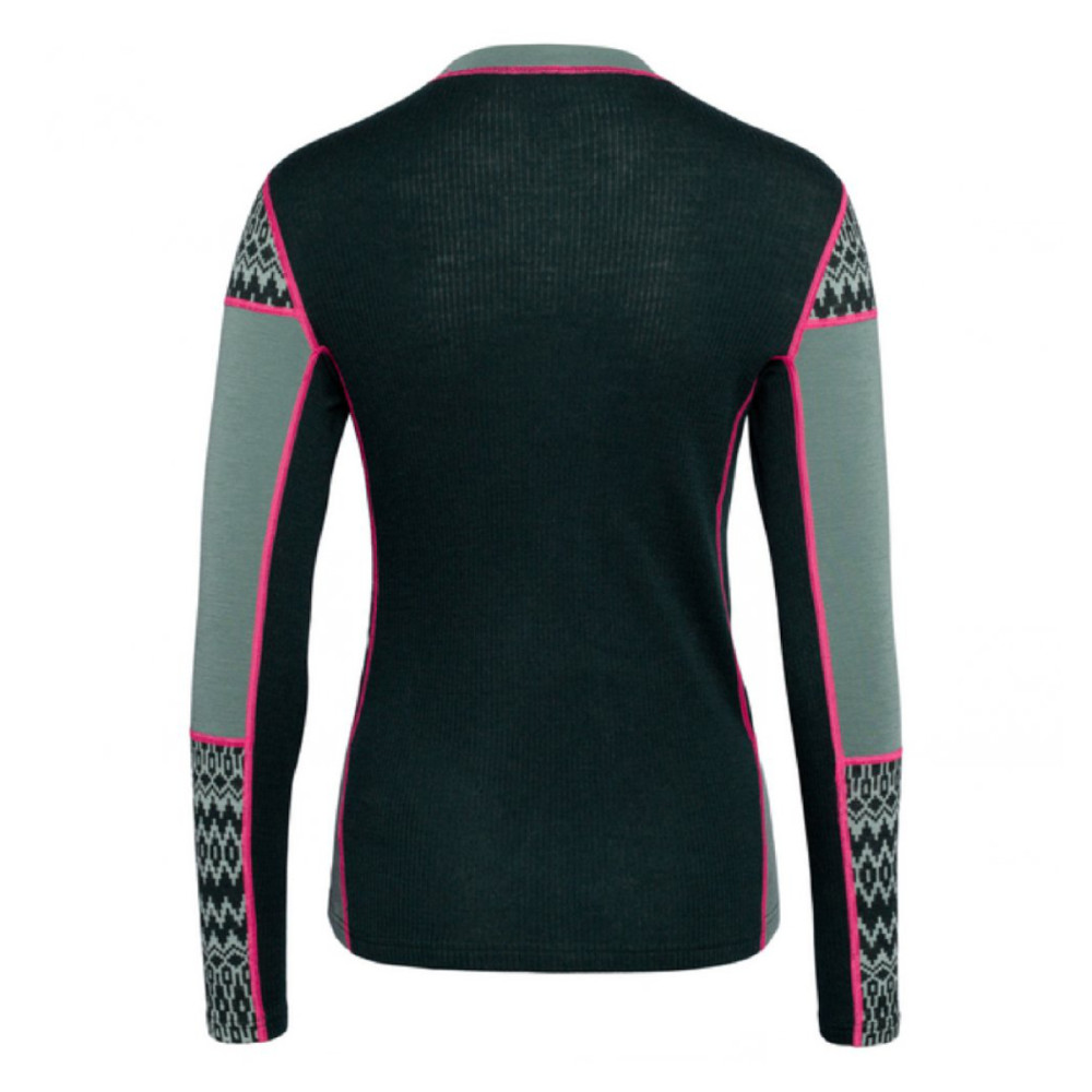 Dámske funkčné tričko Kari Traa Sara s dlhým rukávom je ideálnou voľbou pre aktívne dni v chladnom počasí. Merino vlna zaisťuje skvelé izolačné vlastnosti aj pri vlhkosti a ponúka maximálne pohodlie na tele. Ploché švy a priliehavý strih podporujú voľnosť pohybu. Škandinávsky vzor na ramenách a rukávoch mu dodáva jedinečný vzhľad, vďaka ktorému si ho obľúbite nielen pri športovaní na horách, ale aj pri každodennom nosení.