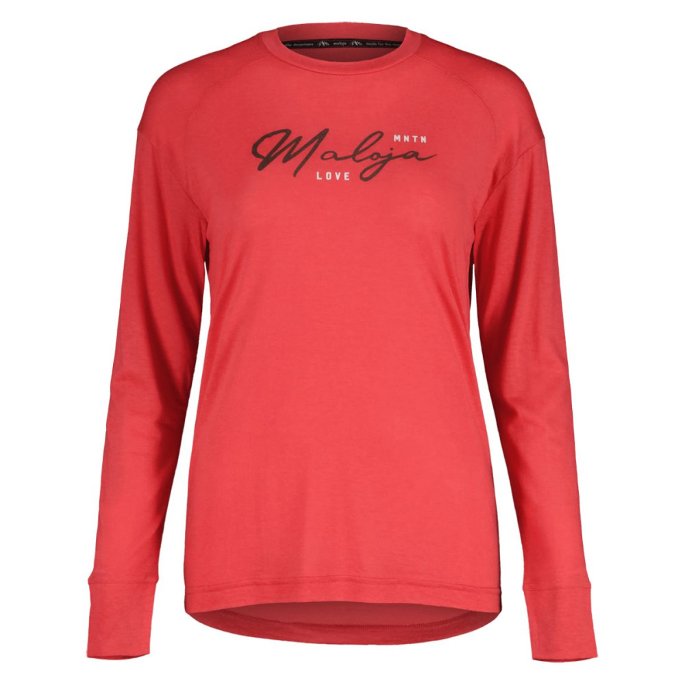 Dámske tričko s dlhým rukávom Maloja z merino vlny a umelého hodvábu sa hodí do každého šatníka. Veľmi dobre reguluje teplotu a rýchlo schne - ako ďalšia vrstva pre šport je ideálna, ale vynikne aj samostatne. Materiál Meri Pro kombinuje vysoko kvalitnú merino vlnu s viskózou a vy tak na sebe ucítite výhody oboch materiálov. Vnútorná strana je z umelého hodvábu a rýchlo odvádza vlhkosť von. Vonkajšia strana z merino vlny rozkladá vlhkosť na väčšiu plochu, vďaka čomu je materiál vždy príjemne suchý. Navyše tričko pôsobí príjemným prírodným dojmom. Na hrudníku je potlač Maloja MNTN Love.