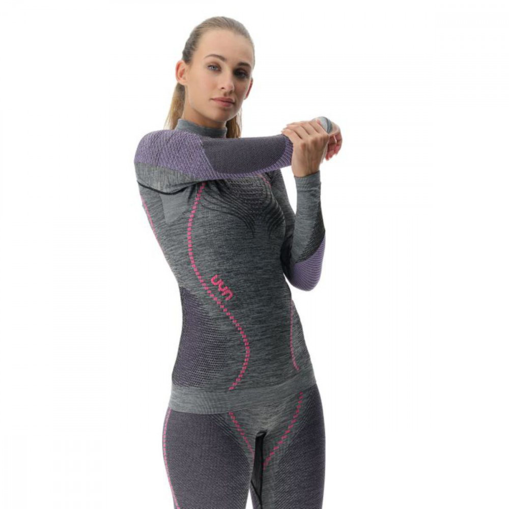 Dámske funkčné tričko s melanžovým vzorom je ideálnou základnou vrstvou pre každú lyžiarku. Najkvalitnejšie tkaniny vytvárajú účinnú termoreguláciu a vysokú priedušnosť. Vďaka dokonalému prispôsobeniu, s bezšvovým dizajnom na rukávoch a ramenách, je oblečenie účinné ako druhá koža a prispôsobuje sa vašim pohybom.