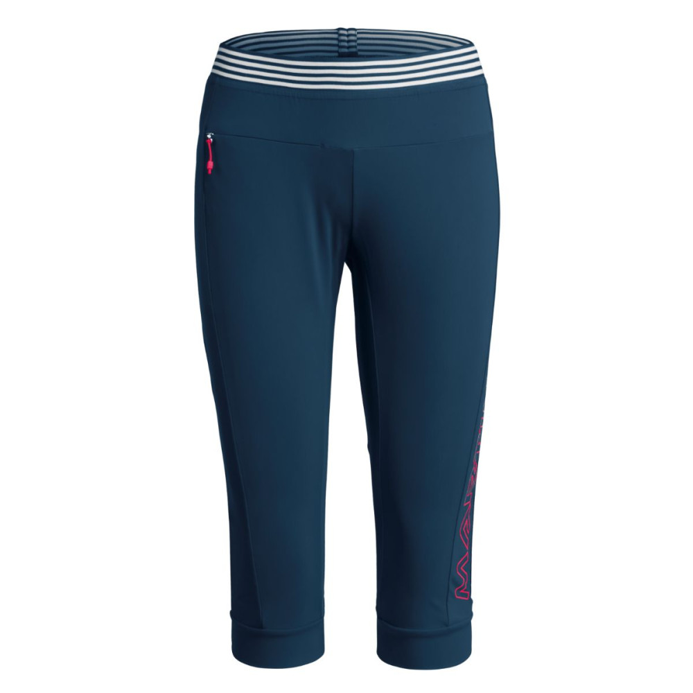 Športové ¾ legíny, ktoré vás zaujmú svojim vysokým komfortom a neobmedzenou voľnosťou pohybu. Legíny sú z elastického materiálu, ktorý sa krásne prispôsobí postave a zároveň je priedušný. V páse je elastická guma, ktorá je doplnená protišmykovými prvkami. Zo zadnej strany v oblasti kolien je perforovaný materiál, ktorý napomáha k odvádzaniu prebytočnej vlhkosti. Dizajn dopĺňa veľké logo na boku nohavíc.