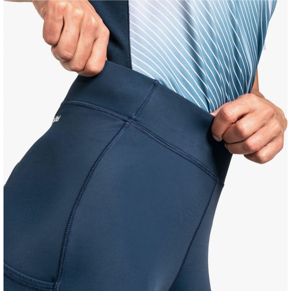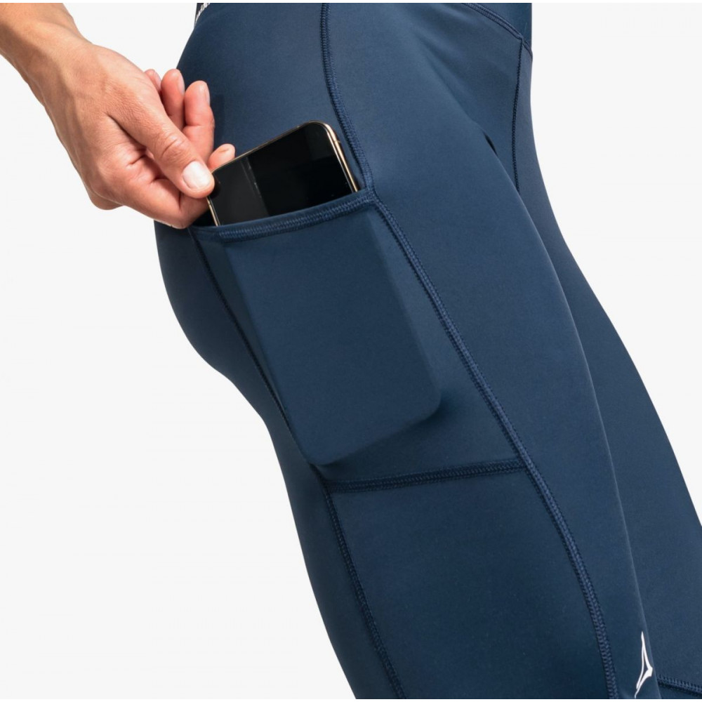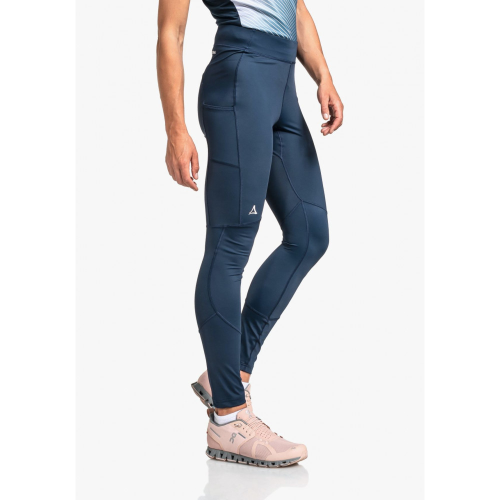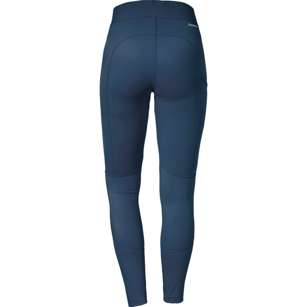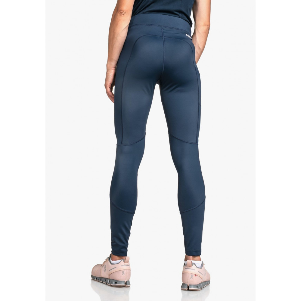 Dámske legíny Schöffel Imada, s ktorými môžete bez starostí športovať celý deň! Legíny sa vďaka technológii 4-way stretch napínajú do všetkých smerov a zaisťujú tak neobmedzenú voľnosť pohybu a pohodlia. Pevnejší materiál zaisťuje ochranu proti oderu. Legíny majú vysoký elastický pás, ktorý sa prispôsobí postave a nikde počas športových aktivít netlačí. Tmavomodré legíny majú po celej dĺžke jemné prešitie a na nohavici je biele logo značky.