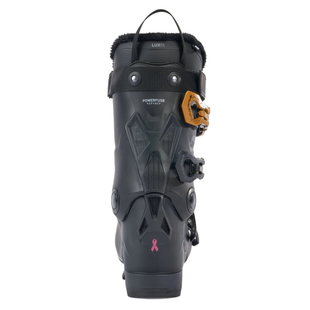 Kedy že to ide posledná lanovka? Ten moment nastane skôr, než si to stačíte uvedomiť. Tieto dámske lyžiarky od K2 sú totiž stavané tak, aby ste mohli lyžovať a lyžovať, kým vás zo svahu nepošlú domov. V ich skelete sa prelínajú štyri rôzne materiály, a to prináša vysokú tuhosť, ale aj nízku hmotnosť. Odozvu na vaše povely potom ešte zosilňuje zadná podpera Powerfuse Spyne v tvare písmena Y. Na druhú stranu sa tak ľahko obúvajú – vďaka mäkšiemu materiálu priehlavku. A predtvarovaná vložka s priestorom pre členky je práve tým faktorom P. Faktorom Pohodlia.