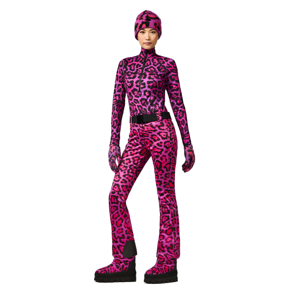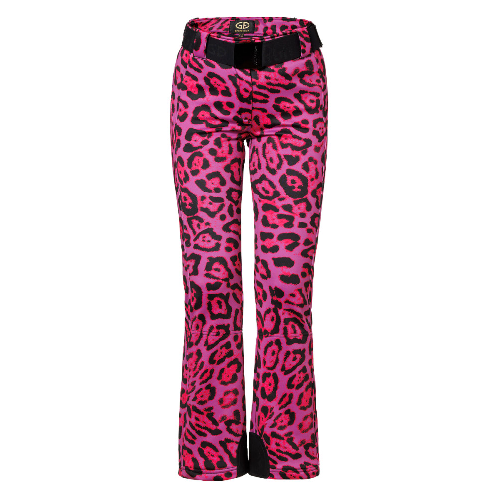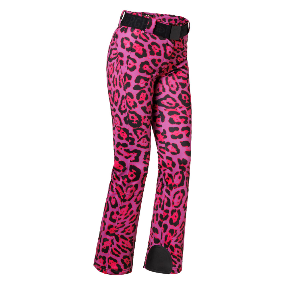 Dámske lyžiarske nohavice Goldbergh MINOU majú výraznú leopardiu potlač a perfektný strih, ktorý zvýrazní vašu ženskú siluetu. Softshellový materiál s vodným stĺpcom 10 000 mm a priedušnosťou 5 000 g/m²/24h chráni pred vlhkosťou aj vetrom. Vnútorné snehové manžety a zipsy v zadnej časti lemu nohavíc zaisťujú pohodlné nosenie. Súčasťou nohavíc je elastický opasok s logom značky, ktorý dopĺňa celkový športovo-elegantný vzhľad. Najviac sa budú hodiť k bunde PANTERA.