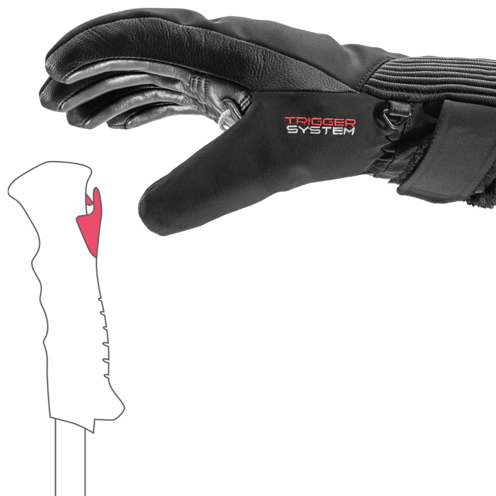 Integrovaný Trigger 3D systém umožňuje rýchle a bezpečné prepojenie rukavice s kompatibilnou lyžiarskou palicou, uľahčuje nacvaknutie aj vycvaknutie a obsahuje bezpečnostnú poistku, ktorá môže v kritickej situácii znížiť riziko zranenia.