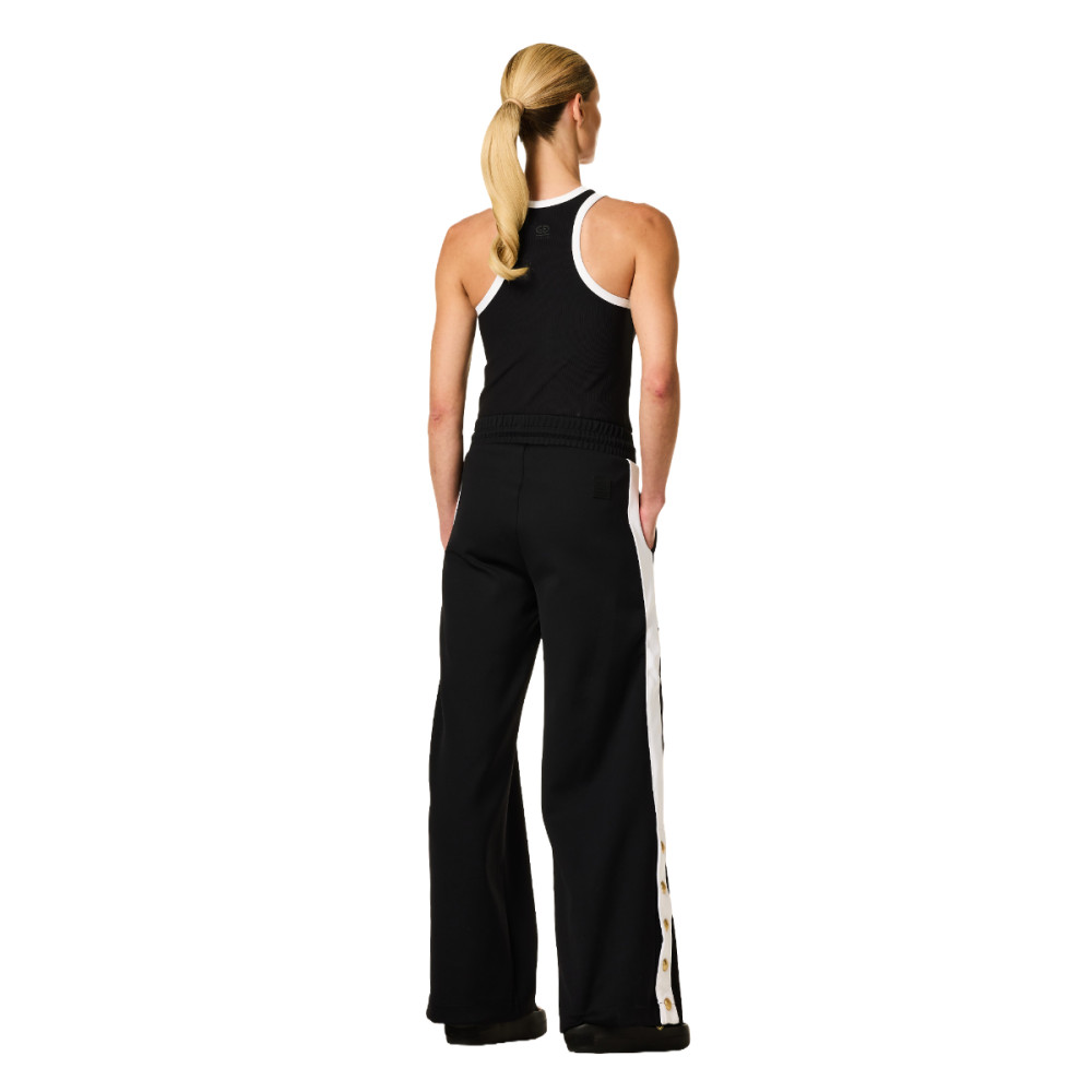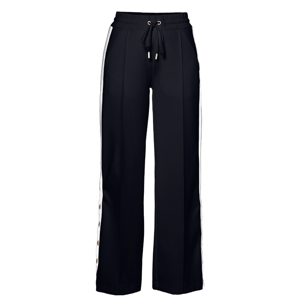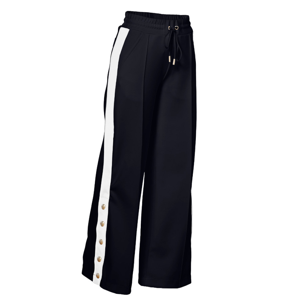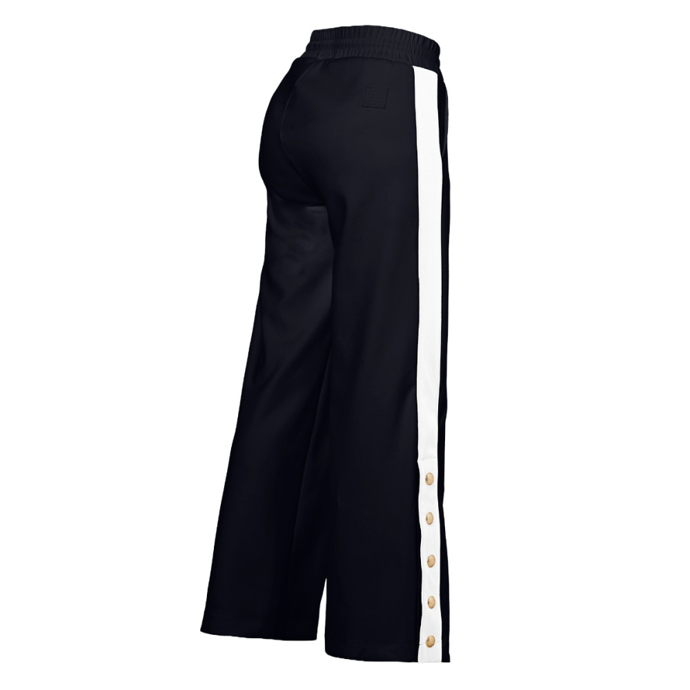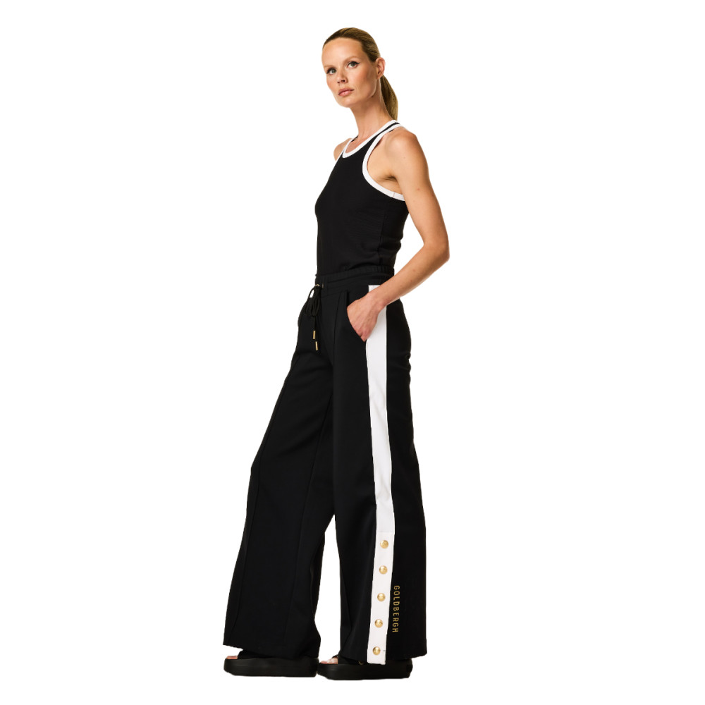 Dámske nohavice Goldbergh Grimaud prepájajú športové pohodlie s nenútenou eleganciou. Ich voľnejší strih a elastický pás so šnúrkou zaisťujú komfort po celý deň, zatiaľ čo kontrastné pruhy pozdĺž nohavíc vytvárajú lichotivú siluetu. Decentné zlaté patenty na spodnej časti umožňujú prispôsobenie rozparku podľa nálady i outfitu.