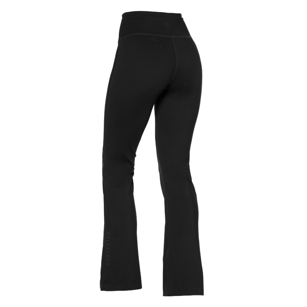 Nohavice Goldbergh LUNGE sú navrhnuté pre ženu, ktorá hľadá štýl aj funkčnosť. Ich elastický materiál sa prispôsobí každému tvaru tela, zatiaľ čo zvonový strih dodáva celému outfitu nevšedný vzhľad. Vysoký pás, ktorý je možné stiahnuť šnúrkou, zaistí perfektný sed a pohodlie pri každom pohybe. Na nohavici nájdete decentné plastické logo značky.