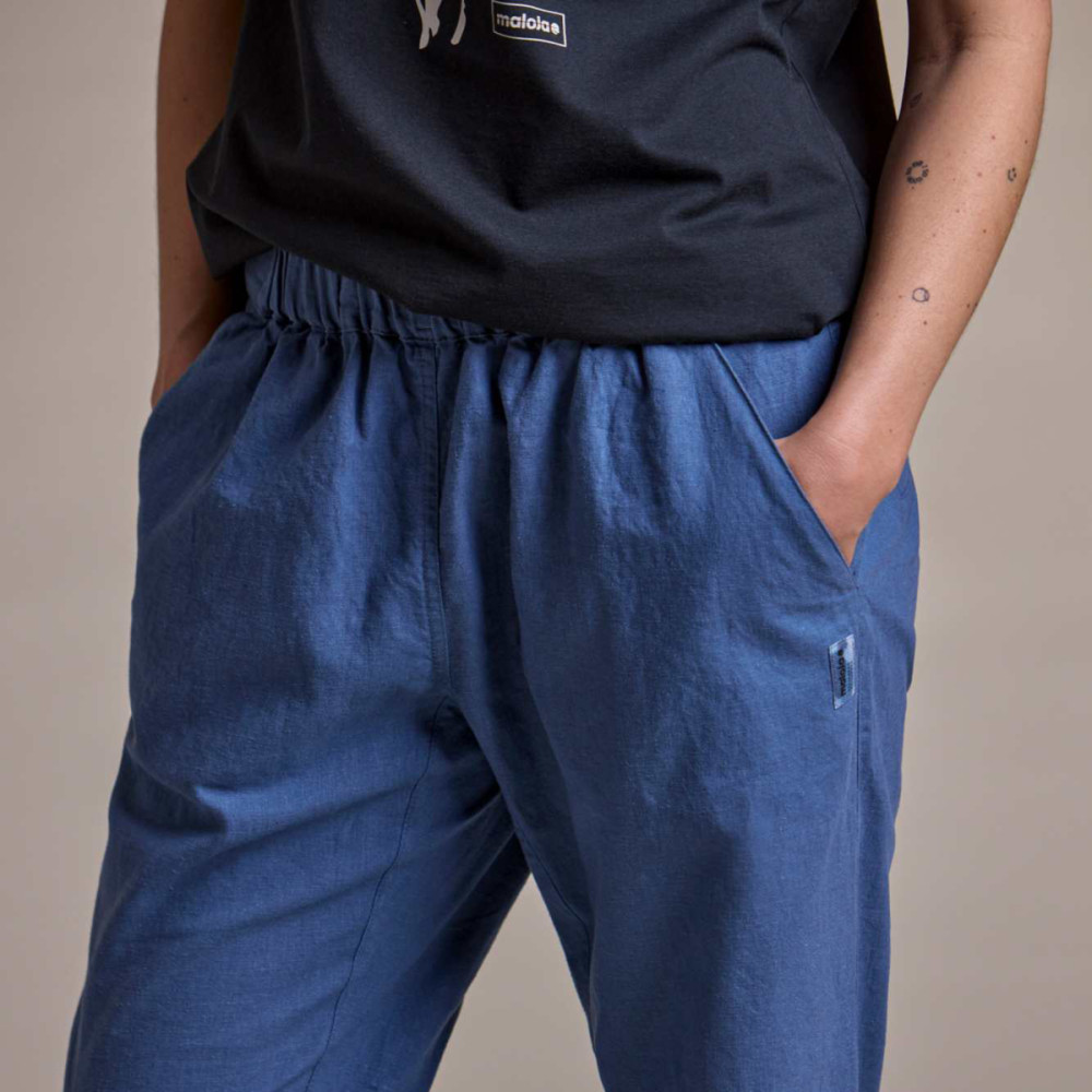 Dámske nohavice Maloja MELACHM. sú vyrobené z materiálu Hemp Light, ktorý kombinuje konope a certifikované organické bavlny. Táto ľahká tkanina poskytuje prirodzenú textúru, vzdušný omak a príjemný chladivý pocit na pokožke. Strih regular fit s inšpiráciou jogger nohavicami zaručuje voľnosť pohybu, elastický pás a elastické manžety u členkov potom celodenné pohodlie bez nutnosti akéhokoľvek nastavovania.