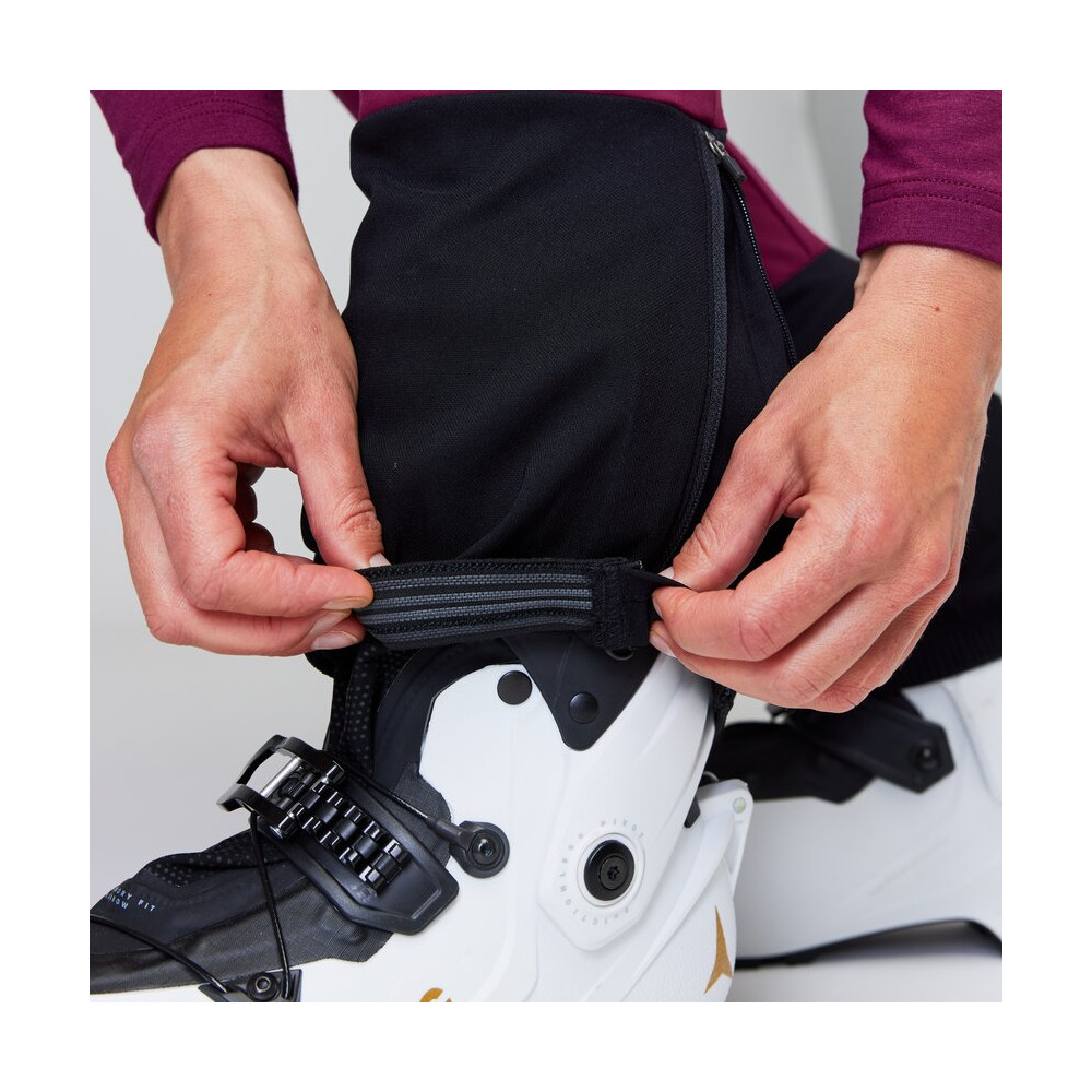Zadný materiál je z elastickej funkčnej tkaniny, ktorá je vysoko priedušná a rýchloschnúca. Na vnútornej strane je fleece, ktorý poskytuje príjemný tepelný komfort. V páse je elastická guma s protišmykovými prvkami na vnútornej strane. Nohavice sú vybavené zipsom, vďaka ktorému ich ľahko pretiahnete aj cez skialpové lyžiarky.
