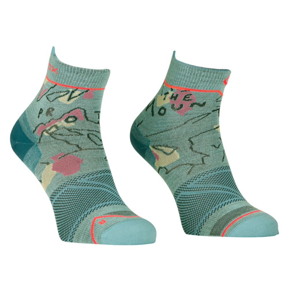Dámske ponožky ORTOVOX ALPINE LIGHT QUARTER SOCKS sú ideálnym spoločníkom na všetky letné dobrodružstvá. Sú pletené zo zmesi merino vlny a syntetiky. Vďaka tomu sú veľmi odolné, príjemné a funkčné. Vlna výborne absorbuje vlhkosť do svojho jadra a skvele dýcha. Navyše je prirodzene antibakteriálna a je schopná neutralizovať pachy. Polyamidové vlákna zvyšujú odolnosť aj životnosť. Ponožky sú vyrobené bezšvovou technológiou pletenia, to znamená že sú pletené do kruhu, vďaka čomu vás v topánkach nič netlačí.