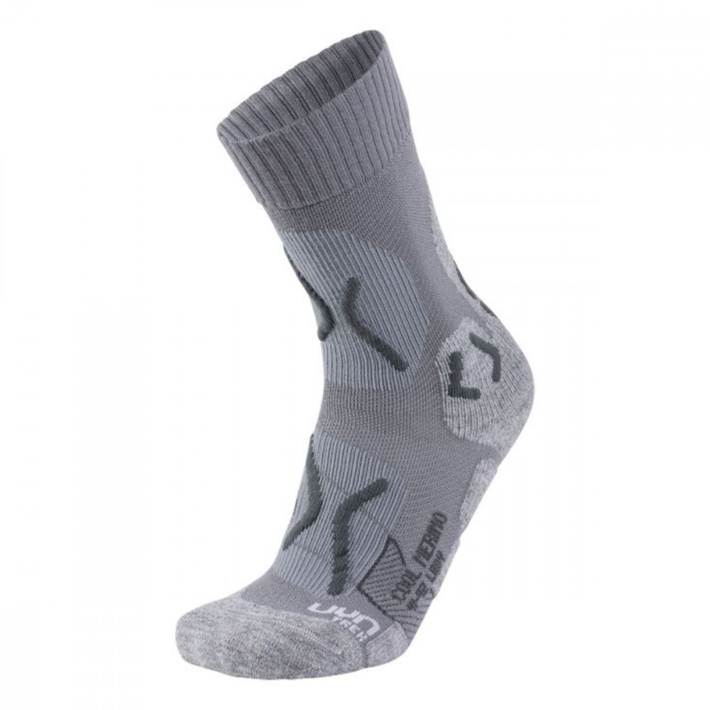 Dámske ponožky UYN TREKKING COOL MERINO, ktoré sa stanú vašim parťákom na každý výstup. Ponožky, vo svetlo šedej farbe, majú 3D štruktúru, ktorá zaisťuje cirkuláciu vzduchu medzi pokožkou a látkou. Kvalitná Merino vlna je v kombinácii so 100% prírodnou látkou Natex, ktorá prináša pohodlie pri nosení. Ponožky poskytujú aj potrebnú kompresiu a fixujú nohu počas aktivity. Dĺžka ponožiek je do polovice lýtka.