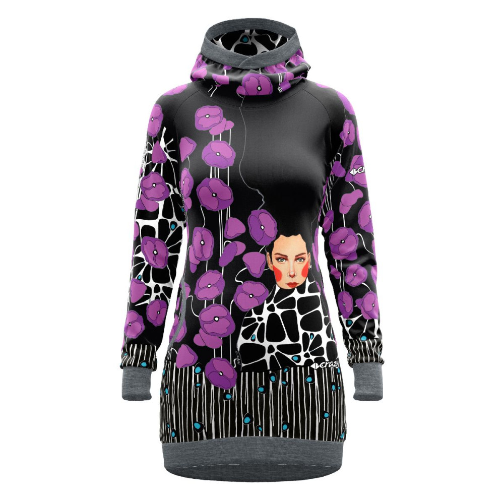 Dámske šaty, ktoré si obľúbite do všetkých pohodových dní. Ojedinelý design dopĺňa vnútorná fleecová podšívka, ktorá je veľmi pohodlná, príjemná na dotyk a poskytuje tepelný komfort. Mikina má vyvýšený stojačik s kapucňou. Spodný lem, kapucňa a rukávy sú ozvláštnené šedým lemovaním.