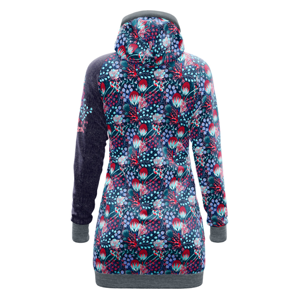 Dámske jedinečné šaty, ktoré sa stanú vašim obľúbeným kúskom do všetkých pohodových dní. Na vnútornej strane je fleecová podšívka, ktorá zaistí príjemný tepelný komfort aj počas chladnejších dní. Spodný lem a rukávy šiat sú tiež ozdobené šedým lemovaním, ktoré podčiarkuje ich jedinečný štýl.