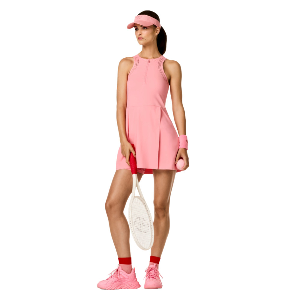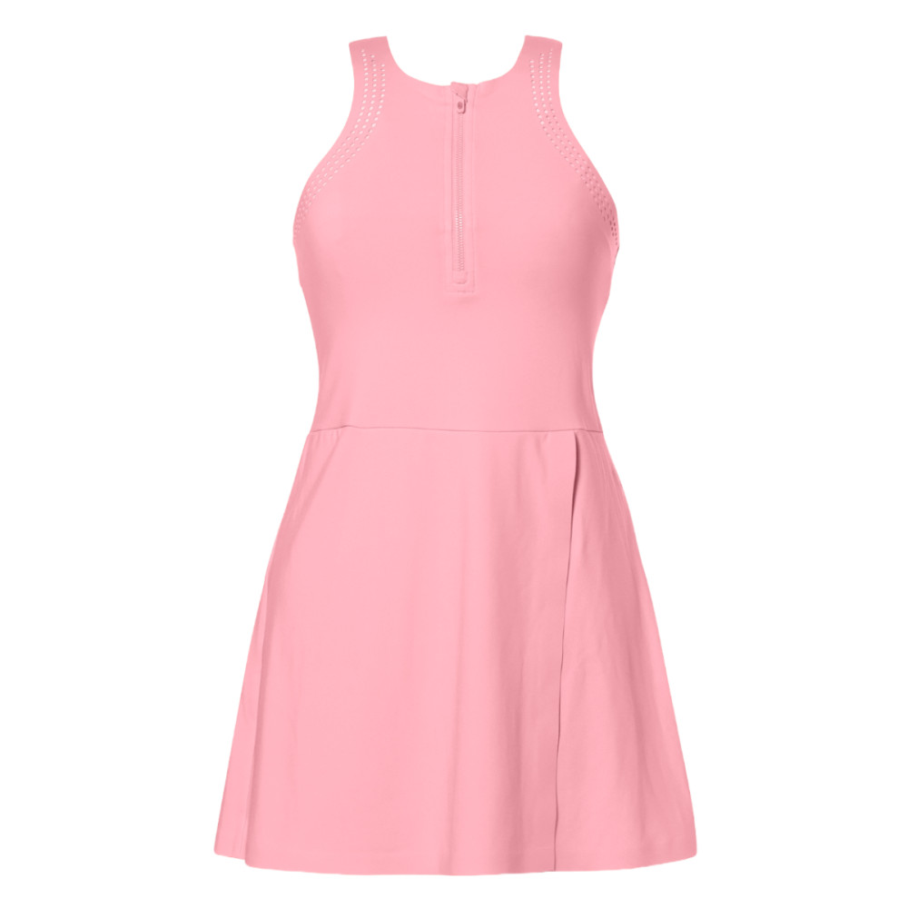 Zips na hrudníku umožňuje ľahké obliekanie a prispôsobenie podľa vašich potrieb, zatiaľ čo všitá podprsenka poskytuje potrebnú oporu a pohodlie. Perforovaný materiál dodáva šatám jedinečný štýl a zároveň zlepšuje cirkuláciu vzduchu.