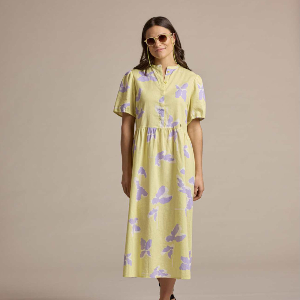 Splývavá silueta s jemne spustenými ramenami a širokými rukávmi zaručuje voľnosť pohybu a zároveň vzdušnú eleganciu. Dizajn šiat je jemný a nenásilný, takže sa hodí do letných dní na záhradu, ale aj do mesta.