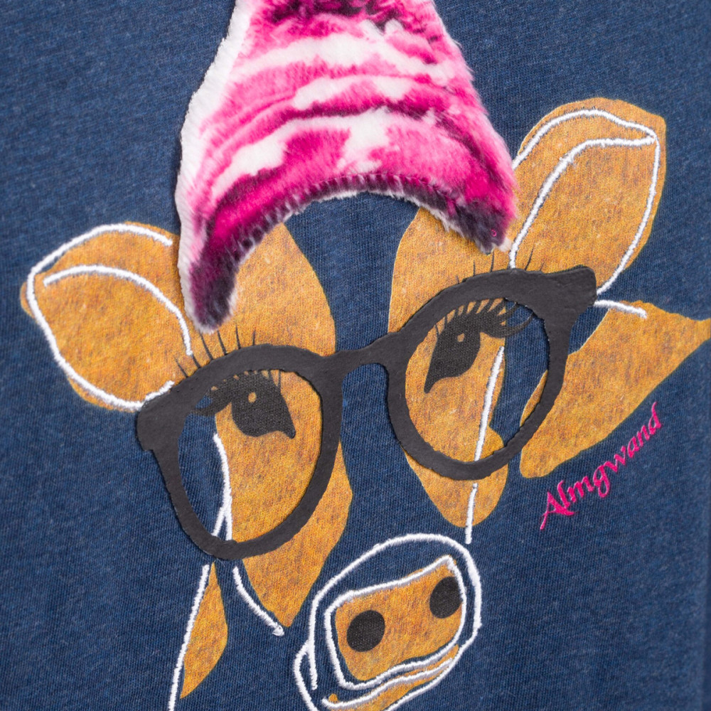 Vďaka vysokému podielu bavlny je tričko veľmi mäkké a hebké na dotyk, takže sa v ňom budete cítiť skvele po celý deň. Ale toto tričko nie je len o pohodlí - jeho jedinečný dizajn z neho robí skutočný módny skvost. Na hrudníku nájdete roztomilý motív kravy s vyšitou červenou čiapkou a okuliarmi, ktorý dodáva tričku hravý a nezameniteľný vzhľad. Na rukáve trička je umiestnená štýlová nášivka v tvare erbu s logom značky Almgwand.