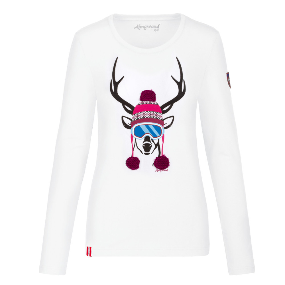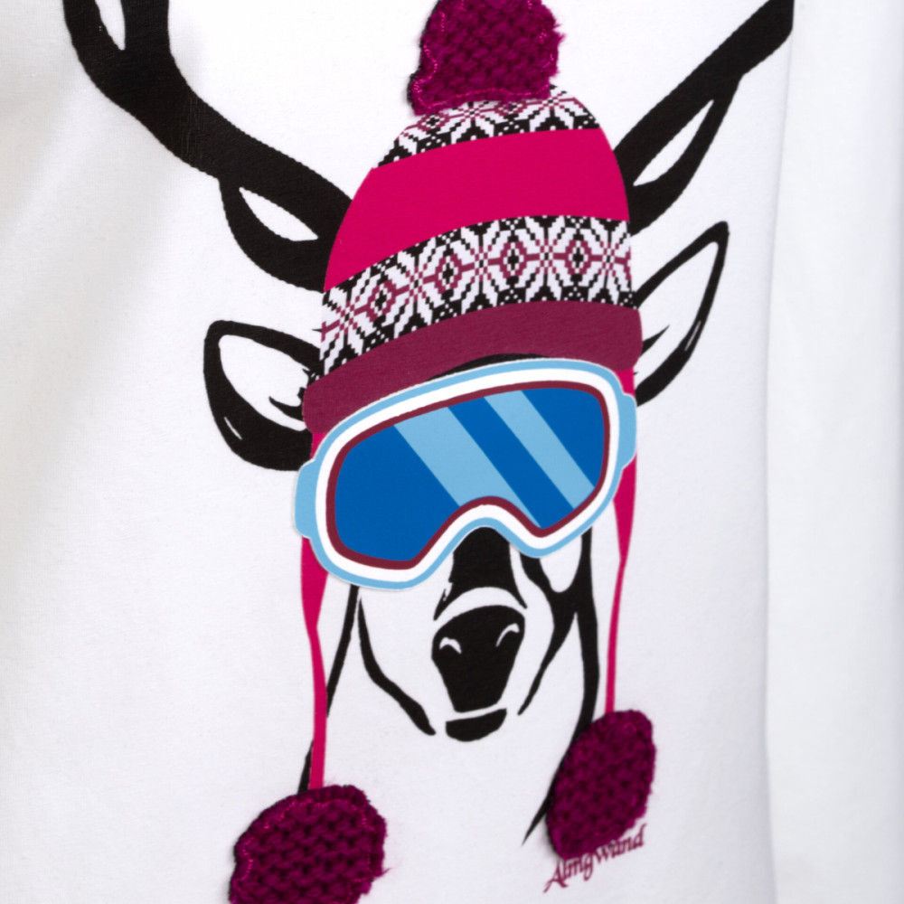 Vďaka vysokému podielu bavlny je tričko veľmi mäkké a hebké na dotyk, takže sa v ňom budete cítiť skvele po celý deň. Tričko sa pýši nádherným motívom jeleňa s pletenou čiapkou a lyžiarskymi okuliarmi. Táto originálna a hravá potlač dodá vášmu outfitu šmrnc. Na rukáve trička nájdete štýlovú nášivku v tvare erbu s logom značky Almgwand.