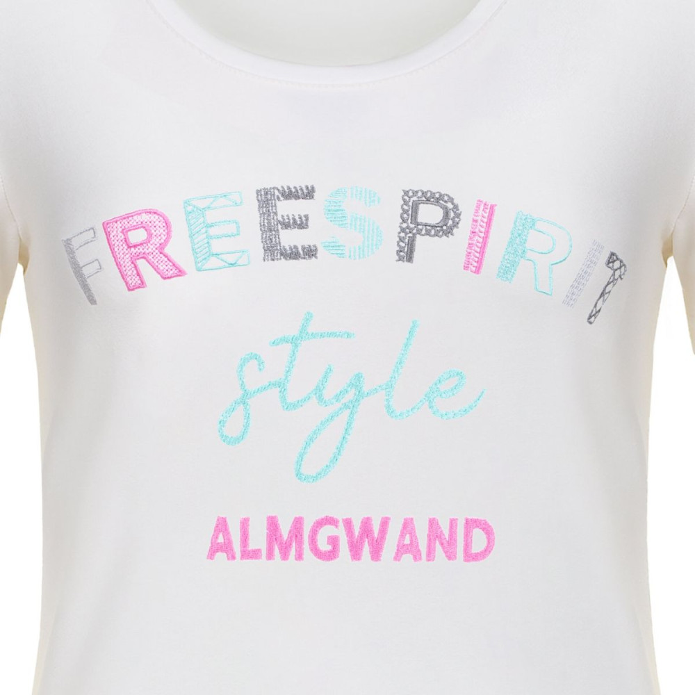 V dámskom tričku Almgwand sa budete cítiť skvele. Možno tomu dopomôže potlač na hrudníku so slovom "Freespirit", ktoré v preklade znamená slobodný duch. To, čo väčšinou cítite na horách si tak môžete nosiť so sebou aj do mesta. Malý podiel elastanu sa postará o to, aby vám tričko pohodlne sedelo na postave.