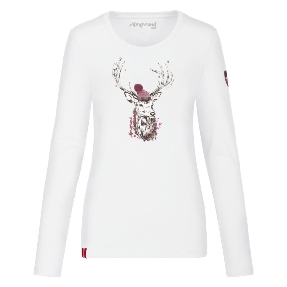 Tričko sa pýši nádherným motívom jeleňa v zimnej čiapke a pleteným ružovým brmbolcom. Táto originálna a hravá potlač dodá vášmu outfitu šmrnc a osobitosť. Na rukáve trička nájdete štýlovú nášivku v tvare erbu s logom značky Almgwand, ktorá podčiarkuje kvalitu a jedinečnosť tohto kúsku.