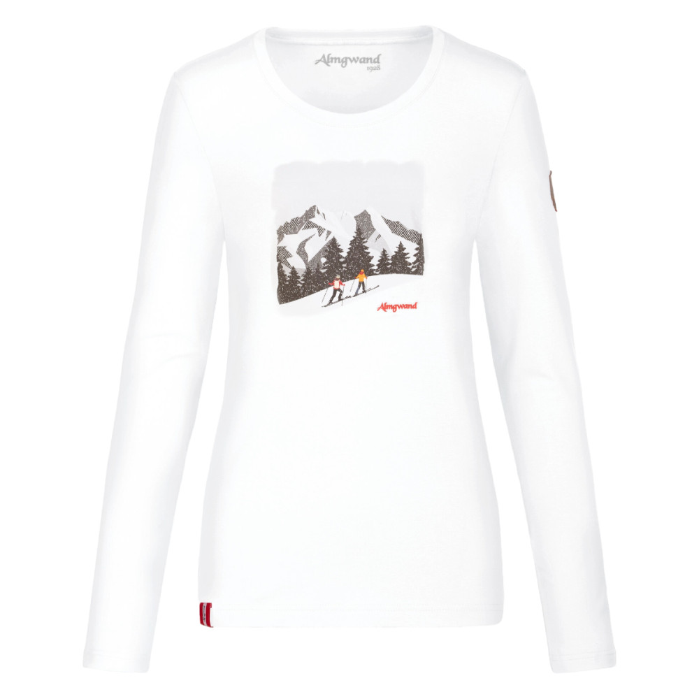 Dámske tričko Almgwand TEUFELSTEINALM je navrhnuté tak, aby okamžite upútalo pozornosť. Na hrudníku sa nachádza motív dvoch stúpajúcich skialpinistov vo vysokých horách, čo dodáva tričku jedinečný charakter a inšpiruje k dobrodružstvu.