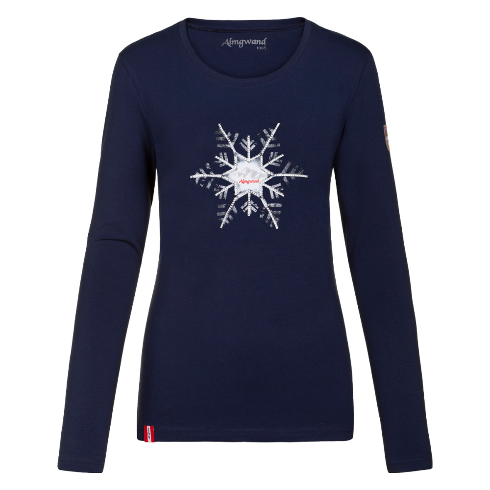Tričko sa pýši tlačeným motívom zimnej vločky. Táto originálna potlač dodá vášmu outfitu šmrnc a osobitosť. Na rukáve trička nájdete štýlovú nášivku v tvare erbu s logom značky Almgwand, ktorá podčiarkuje kvalitu a jedinečnosť tohto kúsku.