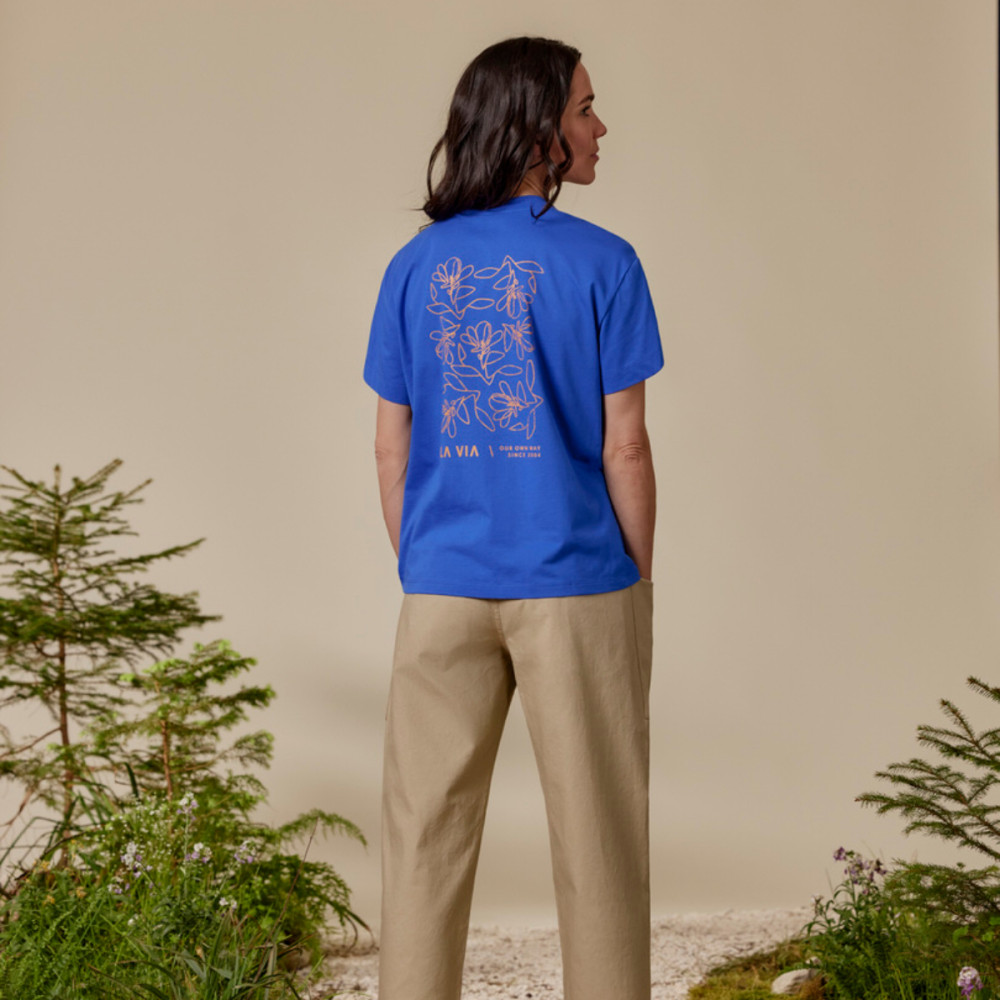 Je vyrobené zo 100% organickej bavlny, takže je neuveriteľne jemné a šetrné k vašej pokožke. Voľnejší strih lichotí každej postave a poskytuje maximálne pohodlie po celý deň. Tričko zaujme svojim jedinečným designom. Na hrudníku nájdete decentný motív kvetu avšak skutočným prekvapením je chrbát, kde sa tento motív opakuje vo veľkom prevedení.