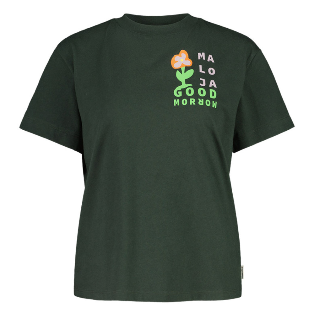 Dámske tričko Maloja MATRAM. je odpoveďou na všetky vaše potreby. Toto voľnočasové tričko je vyrobené zo 100% organickej bavlny, takže sa môžete spoľahnúť na jeho kvalitu a pohodlie. Jemný materiál je príjemný na dotyk a priedušný, takže sa v ňom budete cítiť skvele po celý deň. Na hrudníku nájdete nápis "Maloja Good morrow" a motív kvety.