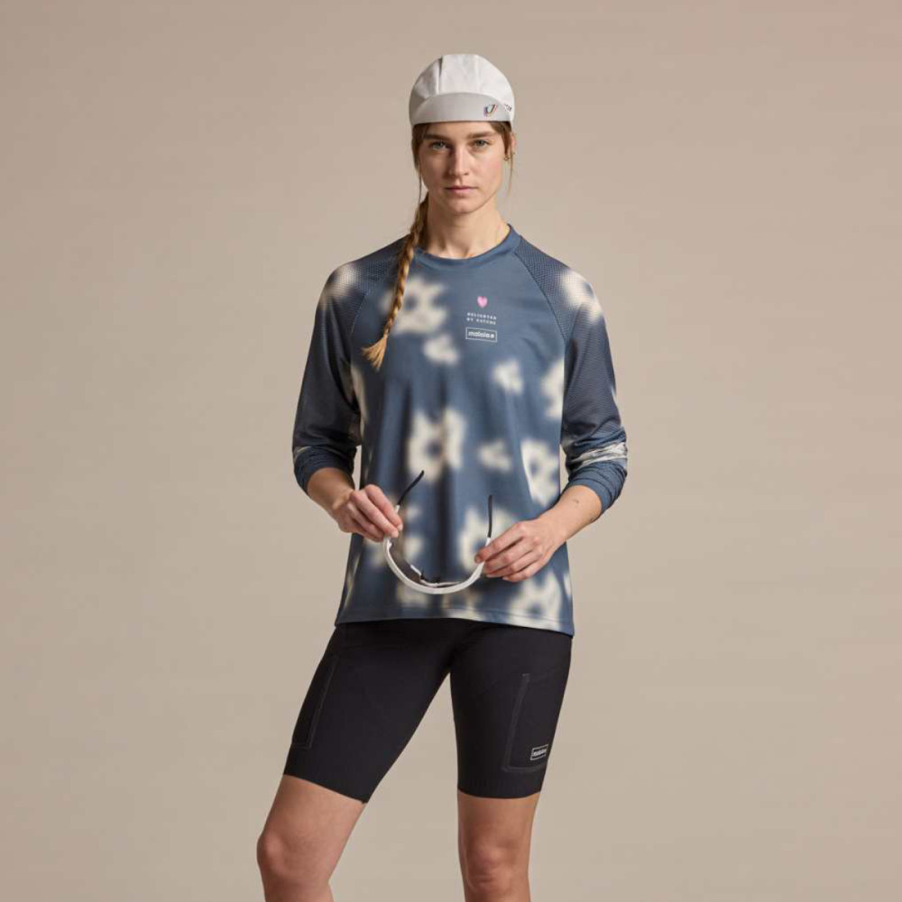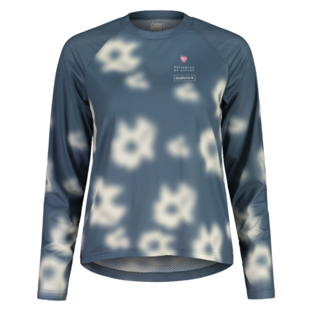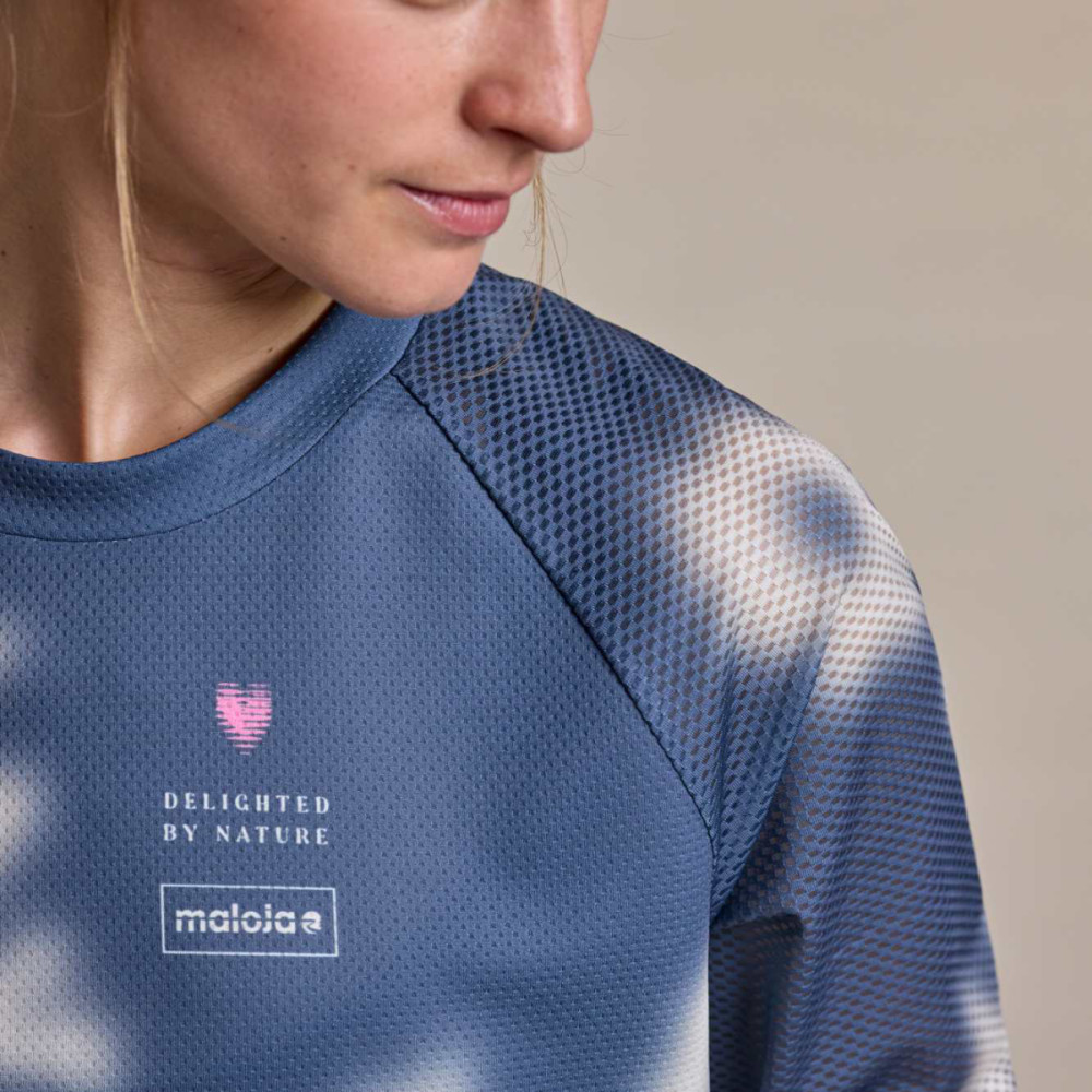 Dres je štylizovaný mriežkovým vzorom s kvetinovými motívmi. Na hrudi nájdete minimalistické logo Maloja, chrbát zdobí výraznú potlač s názvom značky inšpirovaný lomom svetla. Raglánové rukávy zaisťujú neobmedzenú voľnosť pohybu, mierne predĺžený chrbát sedí presne v cyklistickej pozícii. Reflexné prvky na chrbte zaisťujú bezpečnosť za šera alebo v hustej prevádzke.