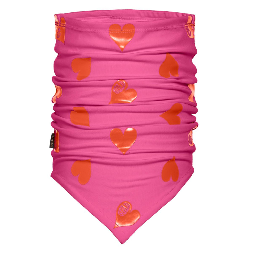 Dámsky nákrčník Goldbergh bude skvelým doplnkom vo vašom šatníku. Na prvý pohľad vás zaujme celoplošný motív srdiečok, ktoré dopĺňajú nápisy „GOLD“. Pevnejší, ale zároveň veľmi príjemný materiál poskytuje perfektný tepelný komfort.