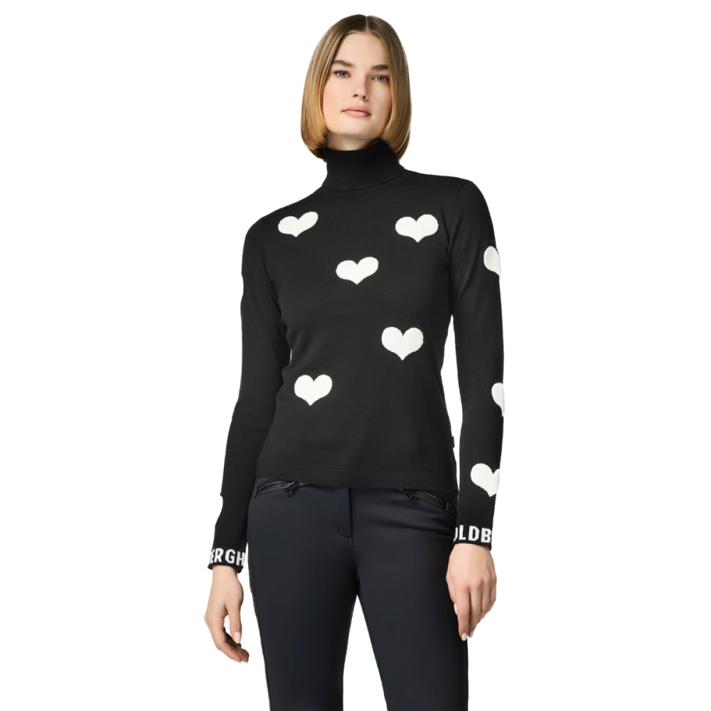 Dámsky sveter Goldbergh BACIO je ideálnou voľbou pre tých, ktorí hľadajú spojenie elegancie a funkčnosti. Tento sveter je vyrobený z jemného úpletu, ktorý zaisťuje pohodlie a teplo aj v chladnejších dňoch. Slim fit strih a priliehavý golier dodávajú svetru moderný vzhľad, zatiaľ čo celoplošná výšivka sŕdc z chenille prináša jedinečný dizajnový prvok.