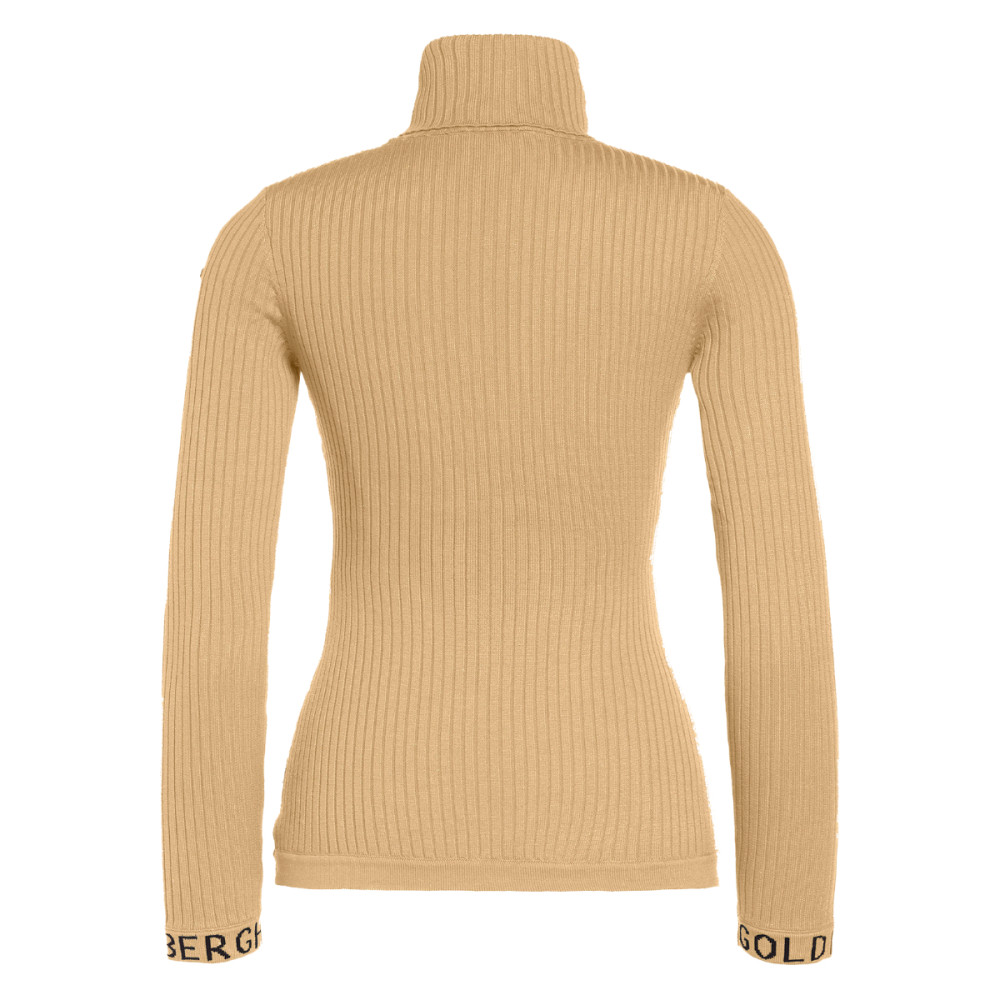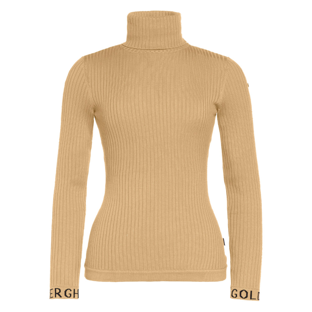 Elegantný dámsky sveter Goldbergh MIRA je vyrobený z jemného rebrovaného úpletu s prímesou merino vlny, ktorá poskytuje výbornú tepelnú izoláciu a mäkkosť. Priliehavý strih s vysokým vyhrňovacím golierom vytvára ženskú siluetu a chráni pred chladom. Na manžetách rukávov je decentný nápis Goldbergh v kontrastnej farbe. Skvelá voľba na každodenné nosenie aj après-ski outfit.