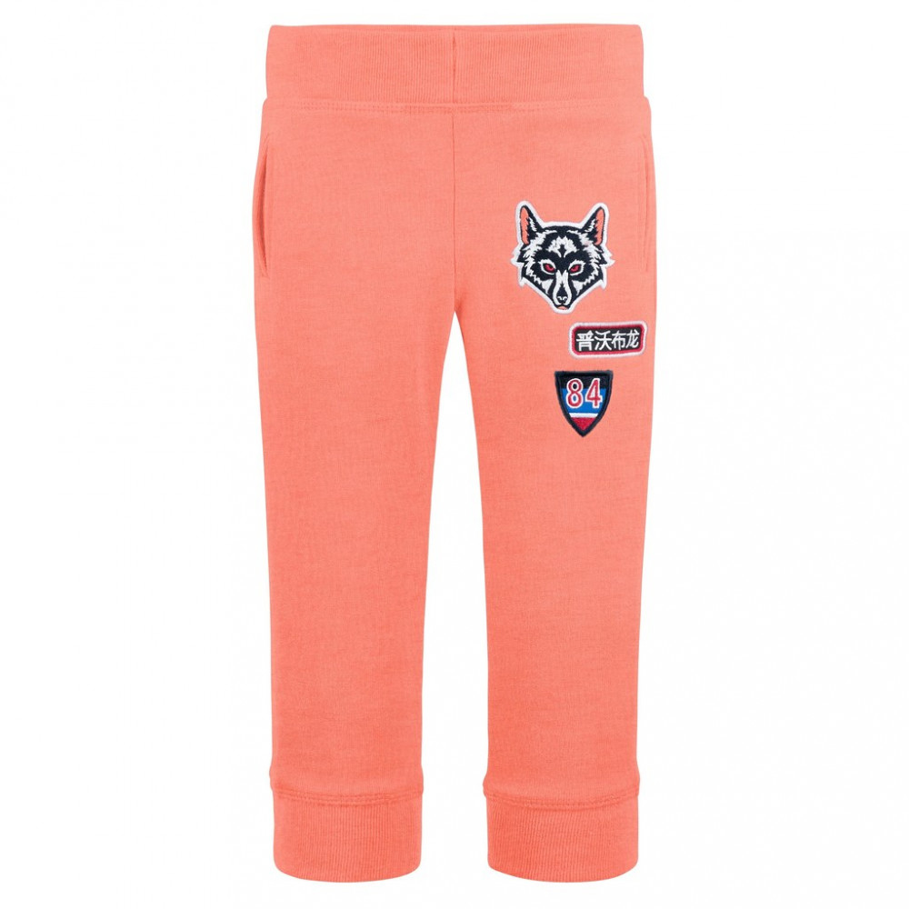 Neónovo oranžové nohavice pre najmenších chlapcov. Tepláky majú rovný strih a skvele sa kombinujú s mikinou z rovnakej kolekcie. Nohavice sú doplnené nášivkami na prednej strane. Zadné vrecko má na sebe nášivku vlny, ktorá je typická pre svoju kolekciu.