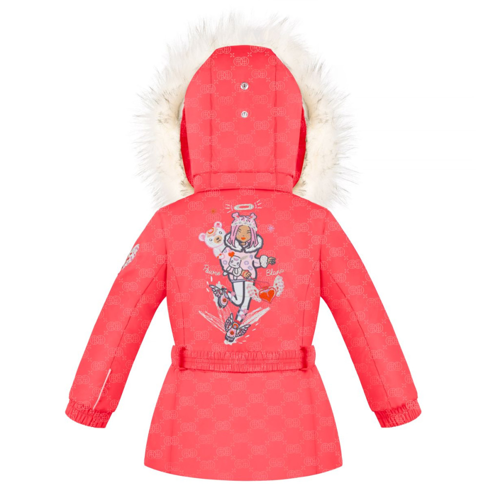 Dievčenská bunda, ktorá Vás bude sprevádzať pri každej zimnej lyžovačke. Je sýto ružovej farby a celkový vzhľad je doplnený bledo ružovou potlačou loga značky. Kvôli ešte väčšej elegancii je okolo kapucne odnímateľná kožušina zo syntetiky. Na bunde oceníte množstvo praktických parametrov a príjemný tepelný komfort. Na páse je opasok s veľkou ozdobnou sponou, ktorý sa dá aj ľahko veľkostne regulovať. Na ramene je malá nášivka srdca a na chrbte veľká krasokorčuliarka.