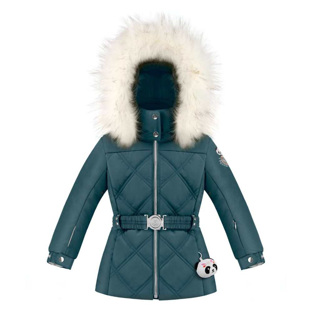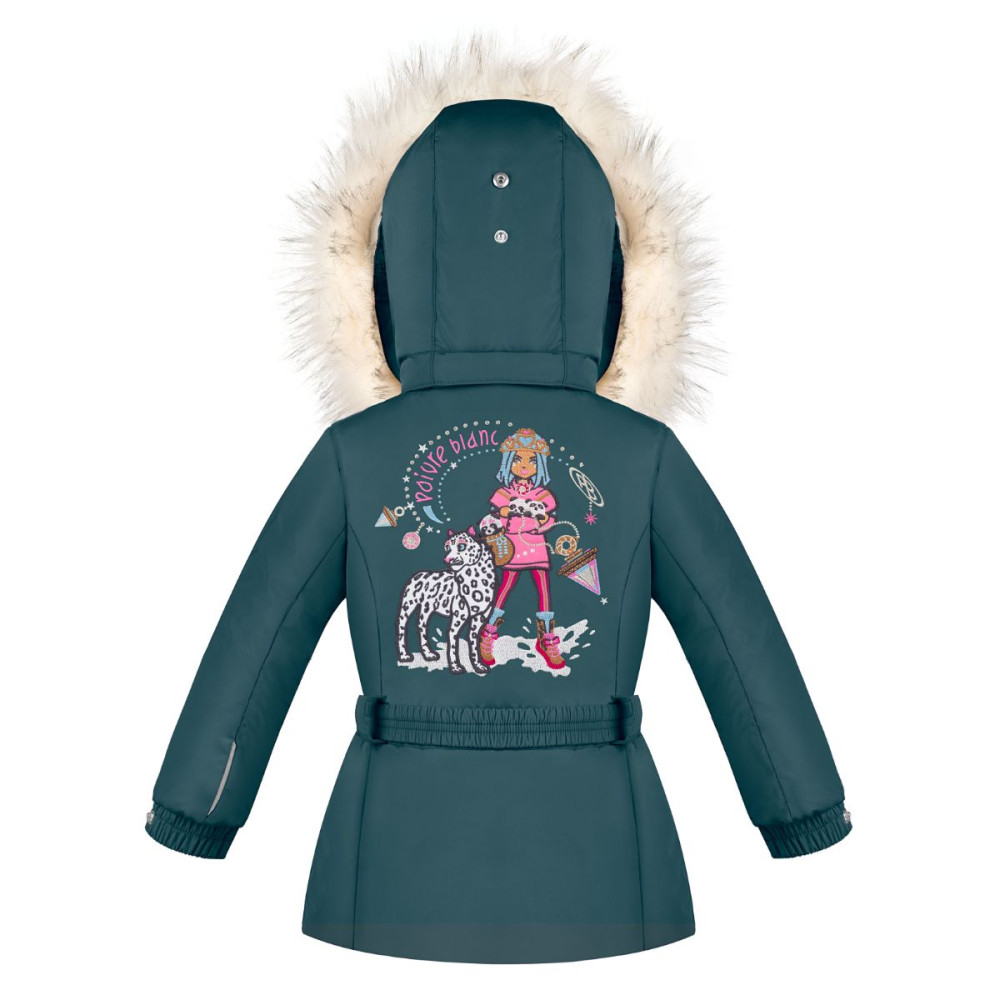 Bunda od značky Poivre Blanc, do ktorej sa zamiluje každá malá milovníčka zimných aktivít. Pri bunde oceníte nespočetné množstvo praktických parametrov a príjemný tepelný komfort. V páse je opasok s veľkou ozdobnou sponou, ktorý sa dá aj ľahko veľkostne regulovať. Na ramene a chrbte je pestrofarebná nášivka princeznej s leopardom. Celkový dizajn dopĺňa jemné kárované prešitie na hrudníku a kožušina zo syntetiky.